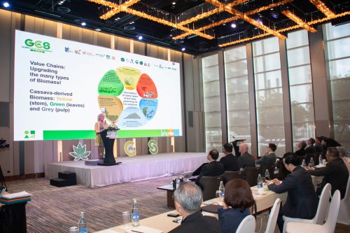 ดร.พันธุ์เพิ่มศักดิ์ อารุณี ผู้ช่วยปลัดกระทรวง อว. ระบุว่า ไทยส่งออกมันสำปะหลังมูลค่ากว่า 3.3 พันล้านดอลลาร์ในปี 2567 และร่วมกับประเทศเพื่อนบ้านครองตลาดโลกถึง 90% โดยภาคมันสำปะหลังไทยยังตั้งเป้าลดการปล่อยก๊าซเรือนกระจกลง 30% ภายในปี 2573 และมุ่งสู่ ความเป็นกลางทางคาร์บอนในปี 2593