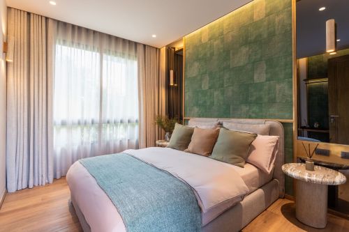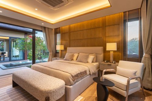 ในส่วนของ Bedroom ประกอบไปด้วย 3 ห้องนอน ซึ่งทุกห้องจะออกแบบให้ผู้อยู่อาศัยได้เต็มอิ่มกับวิวสวน ดื่มด่ำไปกับกับธรรมชาติอย่างใกล้ชิดในทุกช่วงเวลา อีกทั้งยังให้ความสำคัญกับพื้นที่ใช้สอยที่กว้างขวาง ด้วยการแบ่งโซนห้องนั่งเล่น และโซนรับประทานอาหาร เชื่อมโยงไปยังครัว Pantry ทำให้สมาชิก หรือเพื่อนฝูง ได้ใช้พื้นที่ทำกิจกรรมร่วมกันได้อย่างใกล้ชิด ส่วนการเลือกใช้เฟอร์นิเจอร์ภายในบ้าน จะให้ความใส่ใจ