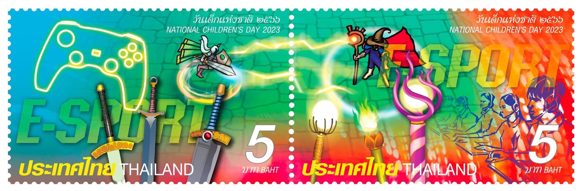บริษัท ไปรษณีย์ไทย จำกัด เปิดตัว แสตมป์วันเด็กปี 2566 ชุด “อีสปอร์ต” เอาใจสายเกมเมอร์ด้วยคอนเซ็ปต์กีฬา E-Sport ซึ่งได้รับความนิยมจากเด็กรุ่นใหม่ ที่ยกระดับการเล่นเกมออนไลน์สู่กีฬาสากล สร้างรายได้จากความชอบและงานอดิเรก โดยแสตมป์ชุดนี้จัดพิมพ์ด้วยเทคนิคพิเศษที่มาพร้อมกับหมึกเรืองแสง ซึ่งจะวางจำหน่ายพร้อมกันในวันที่ 14 มกราคม 2566 ณ ไปรษณีย์ทั่วประเทศ และทางออนไลน์ผ่านแอปพลิเคชันหรือเว็บไซต์ www.thailandpostmart.com