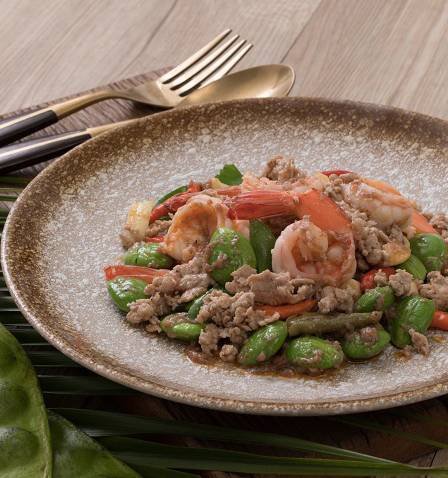ผัดสะตอกุ้งสดหมูสับ จากกะปิชื่อดังบนเกาะลันตา สะตอพื้นบ้าน และกุ้งสด ๆ จากชุมชนชาวประมงบนเกาะ