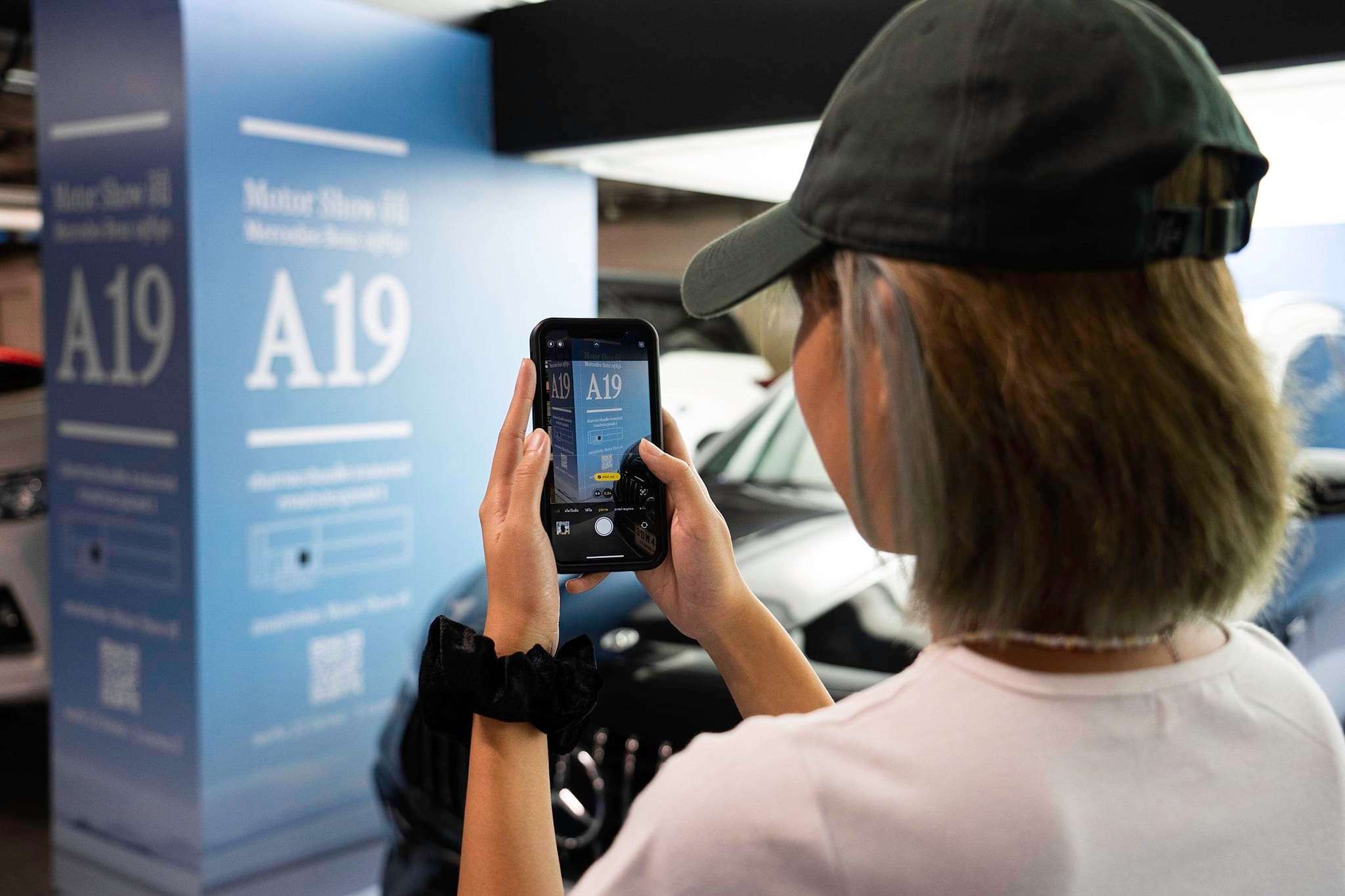 นอกจากจะทำให้คนจดจำหมายเลข A19 แล้ว เมอร์เซเดส-เบนซ์ ยังต้องการชวนให้ทุกคนมาสัมผัสกับบูธเมอร์เซเดส-เบนซ์ ในรูปแบบใหม่ เพียงแค่ไปสแกน QR Code ตามเสาจอดรถ A19 ที่ห้างดังอย่าง เซ็นทรัลเวิลด์ / เซ็นทรัล เฟสติวัล อีสต์วิลล์ / เซ็นทรัล ลาดพร้าว และเมกาบางนา หรือคลิกลงทะเบียนผ่านลิงก์ http://mb4.me/BIMSonline ก็สามารถรับบัตรเข้างานมอเตอร์โชว์ได้แบบฟรี ๆ พร้อมรับแผนที่ที่จะนำทางไปยังบูธเมอร์เซเดส-เบนซ์ เพื่อสัมผัสกับยนตรกรรมสุดหรูทุกรุ่นภายในงาน