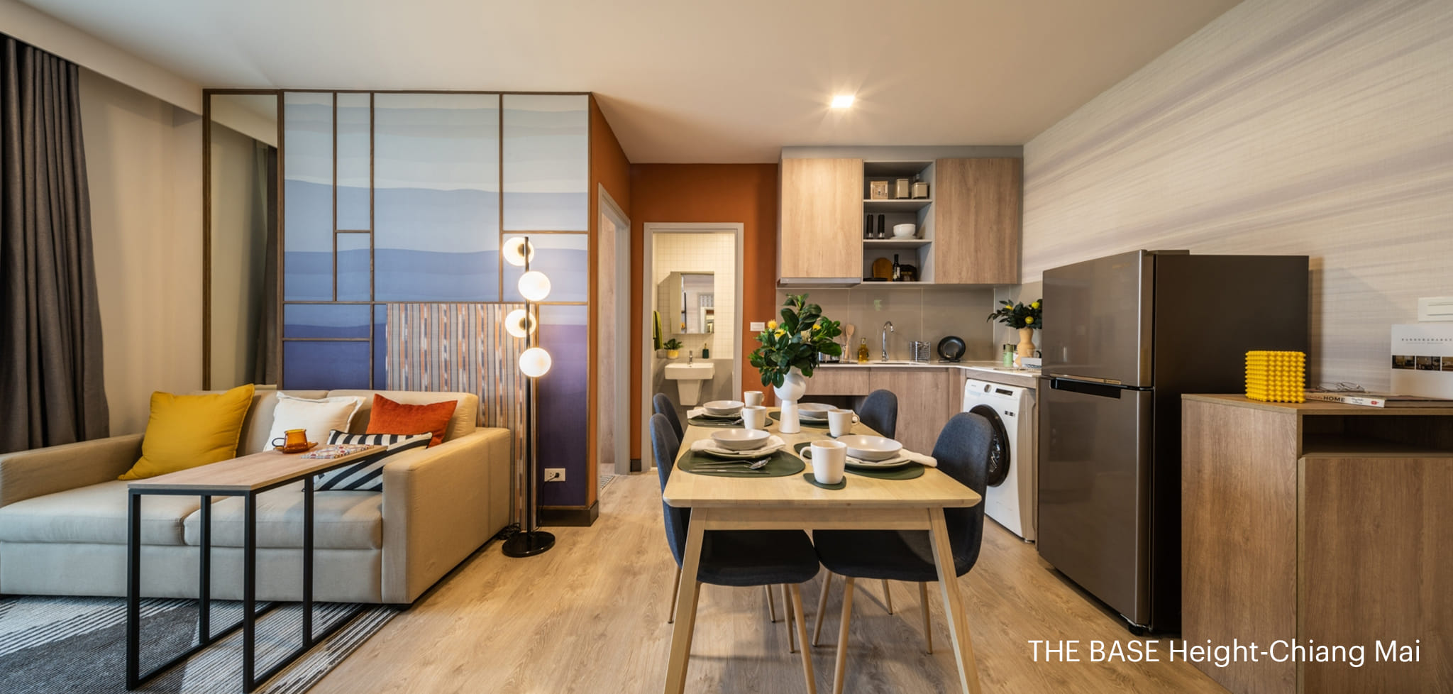 เดอะ เบส ไฮท์-เชียงใหม่” (THE BASE Height-Chiang Mai) คอนโดมิเนียมตึกสูงตึกแรกจากแสนสิริในเชียงใหม่ สูง 31 ชั้น จำนวนยูนิตพักอาศัย 630 ยูนิต ในรูปแบบ 1 ห้องนอน เริ่ม 29.25 – 46.00 ตร.ม. และ 2 ห้องนอน เริ่ม 53.50 – 56.50 ตร.ม. มูลค่าโครงการ 1,900 ล้านบาท ทำเลดีที่สุด ตั้งอยู่บนถนนแก้วนวรัฐ ใกล้เซ็นทรัล เฟสติวัล* เพียง 3 นาที รายล้อมด้วยแหล่งอำนวยความสะดวกอื่น ๆ ได้แก่ บิ๊กซี เอ็กซ์ตร้า เชียงใหม่ 2, โรงพยาบาลเทพปัญญา, โรงพยาบาลแมคคอร์มิค, โรงพยาบาลอินเตอร์เมด และโรงพยาบาลกรุงเทพเชียงใหม่ ใกล้สถานศึกษาชั้นนำของจังหวัด เช่น โรงเรียนปรินส์รอยแยลส์วิทยาลัยและโรงเรียนนานาชาติเชียงใหม่ (CMIS) ที่สะดวกต่อการเดินทางเข้า-ออกเมืองและง่ายต่อการเดินทางข้ามจังหวัดไปเชียงราย, ลำพูนและลำปาง ตอบโจทย์ผู้อยู่อาศัยเองและลงทุน กับราคาเริ่มต้น 2.39 ลบ.* เฉลี่ย 84,000 บาท/ตร.ม. และอัตราผลตอบแทนจากการปล่อยเช่า (Rental Yield) เฉลี่ย 6%
