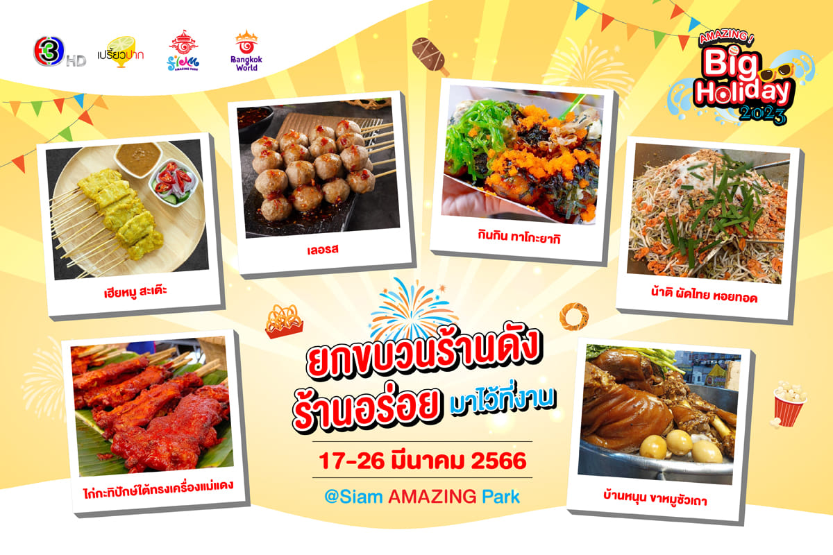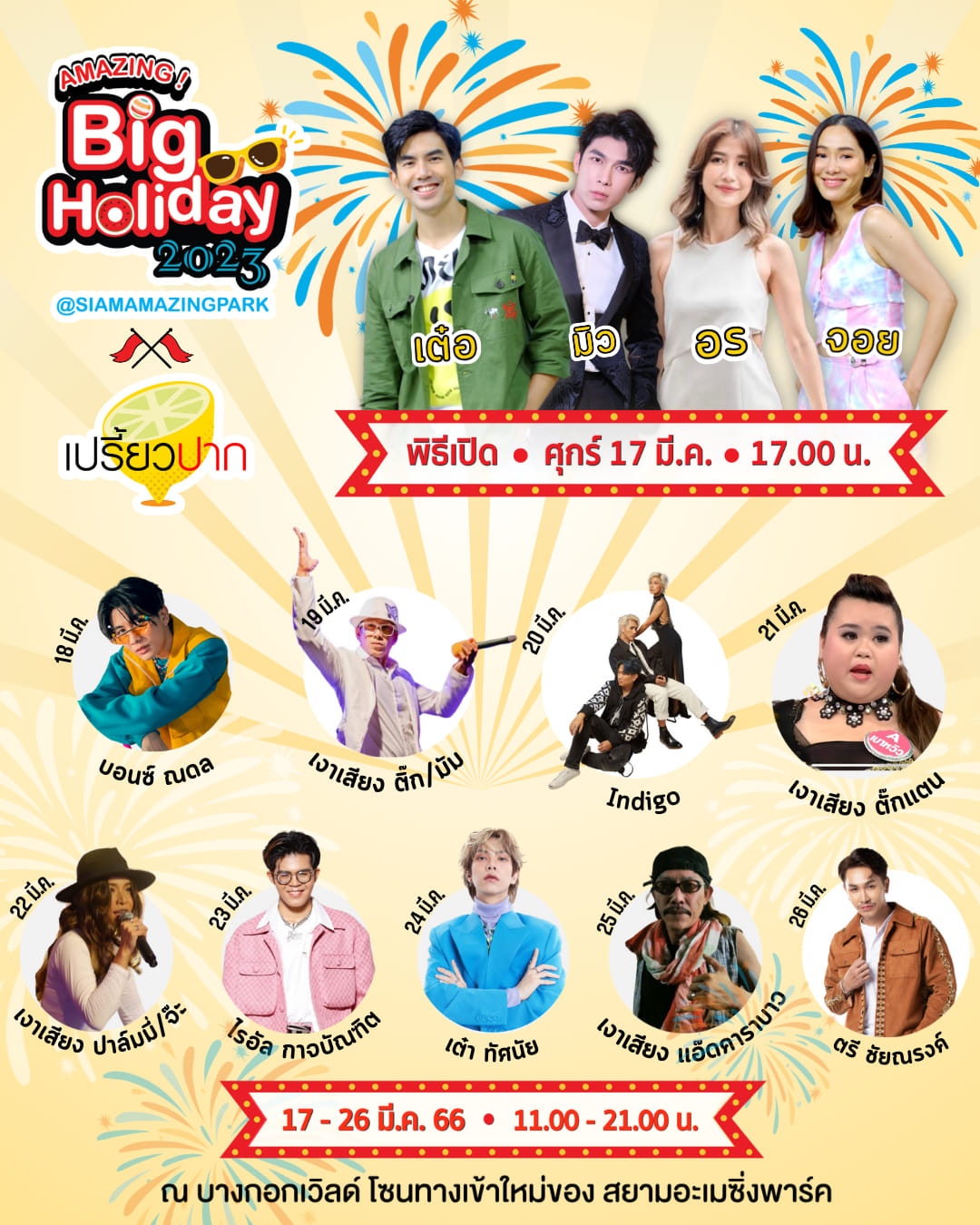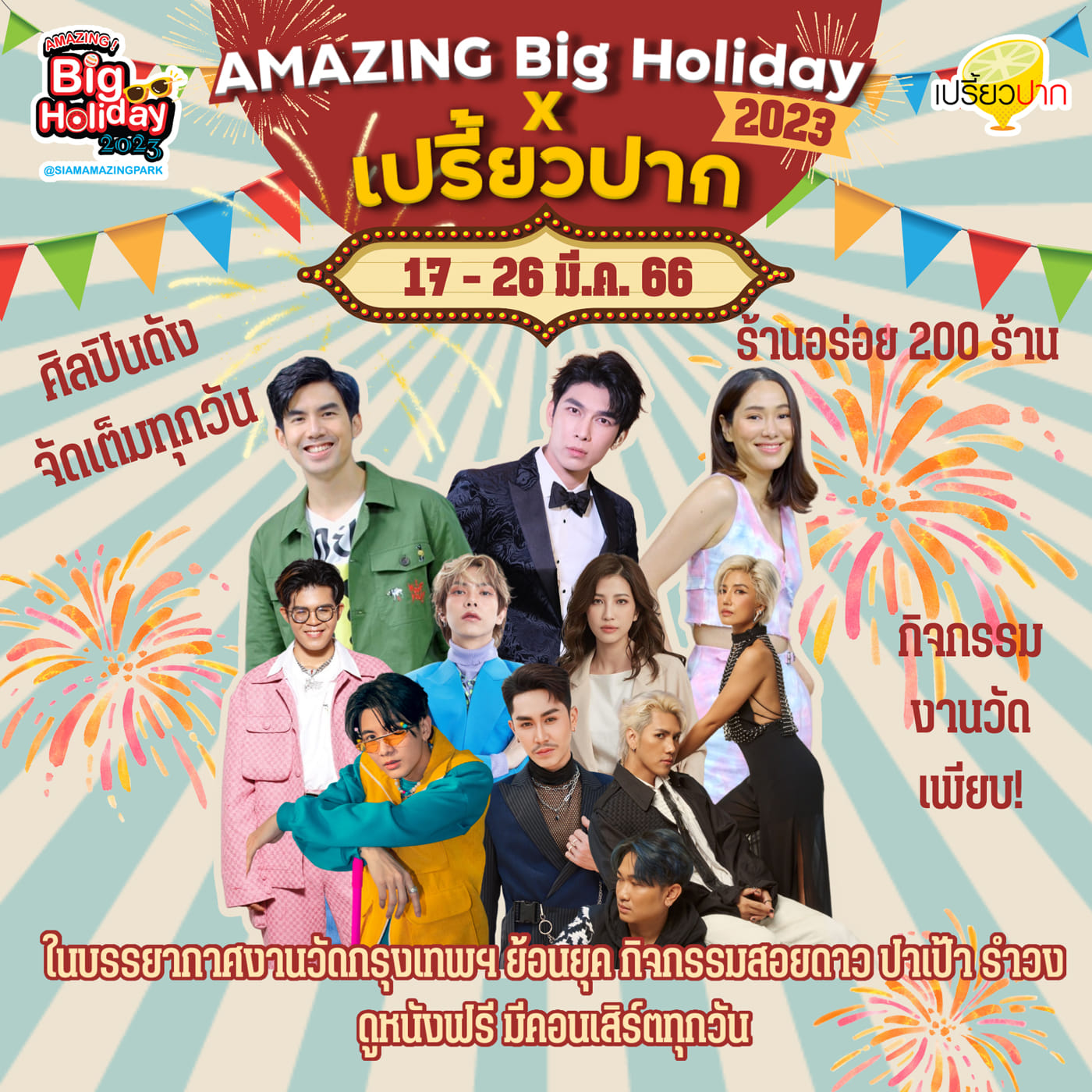 พลาดไม่ได้! เทศกาลความสนุกครบรสรวมไว้ที่นี่ที่เดียว ไปสนุกสุดฟินกันได้ที่งาน “AMAZING Big Holiday 2023 x เปรี้ยวปาก @SiamAMAZINGPark” วันที่ 17-26 มีนาคม 2566 เวลา 11.00-21.00 น. ณ บางกอกเวิลด์ โซนทางเข้าใหม่ของสยามอะเมซิ่งพาร์ค