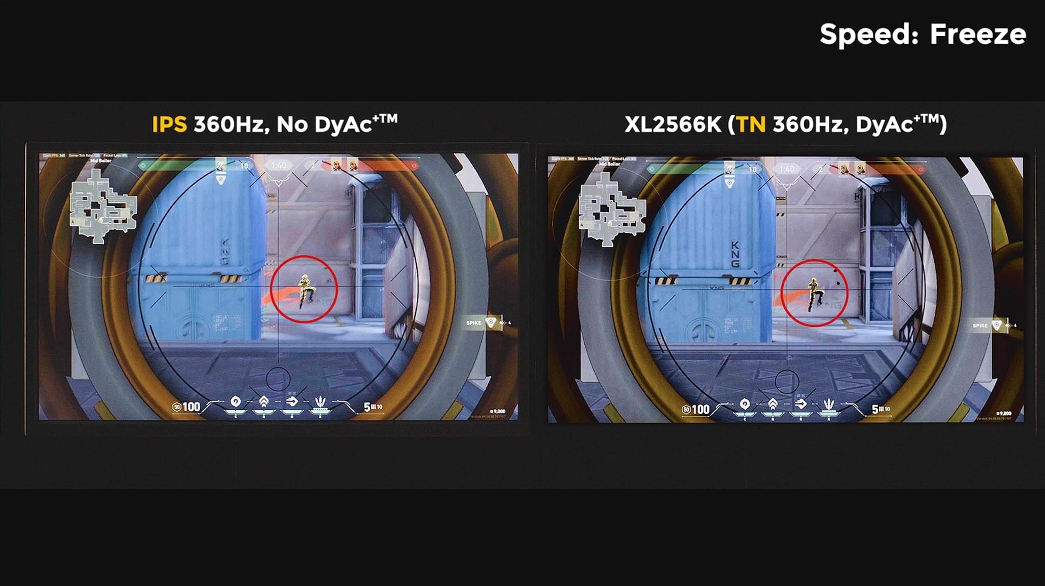 เทคโนโลยี DyAc⁺™ ช่วยลดอาการเบลอของภาพเคลื่อนไหวพร้อมมอบภาพที่ชัดใสให้แก่ผู้เล่นเพื่อให้สามารถวางแนวทางการยิงได้อย่างแม่นยำ ในขณะที่เทคโนโลยีการปรับแต่งค่าสี Black eQualizer ยังช่วยปรับปรุงการแสดงผลภาพในฉากที่มืดโดยไม่ต้องเพิ่มระดับแสงจนทำให้พื้นที่ส่วนสว่างดูสว่างมากเกินไป ฟีเจอร์นี้ยังช่วยถนอมสายตาของผู้เล่นหลังจากที่ต้องดูฉากที่มีแสงสว่างวาบ ให้สามารถมองเห็นฉากที่มีควันพร่ามัวได้ ส่วนพาเนล TN ความเร็วสูงช่วยให้ผู้เล่นสามารถโฟกัสภาพได้ดีขึ้น ช่วยลดความสับสนโดยการปรับโครงร่างของเป้าหมายที่กำลังเคลื่อนไหวให้มีขอบภาพที่คมชัดและง่ายต่อการติดตาม ด้วยสองฟีเจอร์สุดล้ำนี้ ทำให้ XL2566K เป็นจอมอนิเตอร์ที่สมบูรณ์แบบสำหรับคอเกมระดับฮาร์ดคอร์ ซึ่งต้องการประสิทธิภาพและความคมชัดในการเล่นเกมขั้นสูงสุด