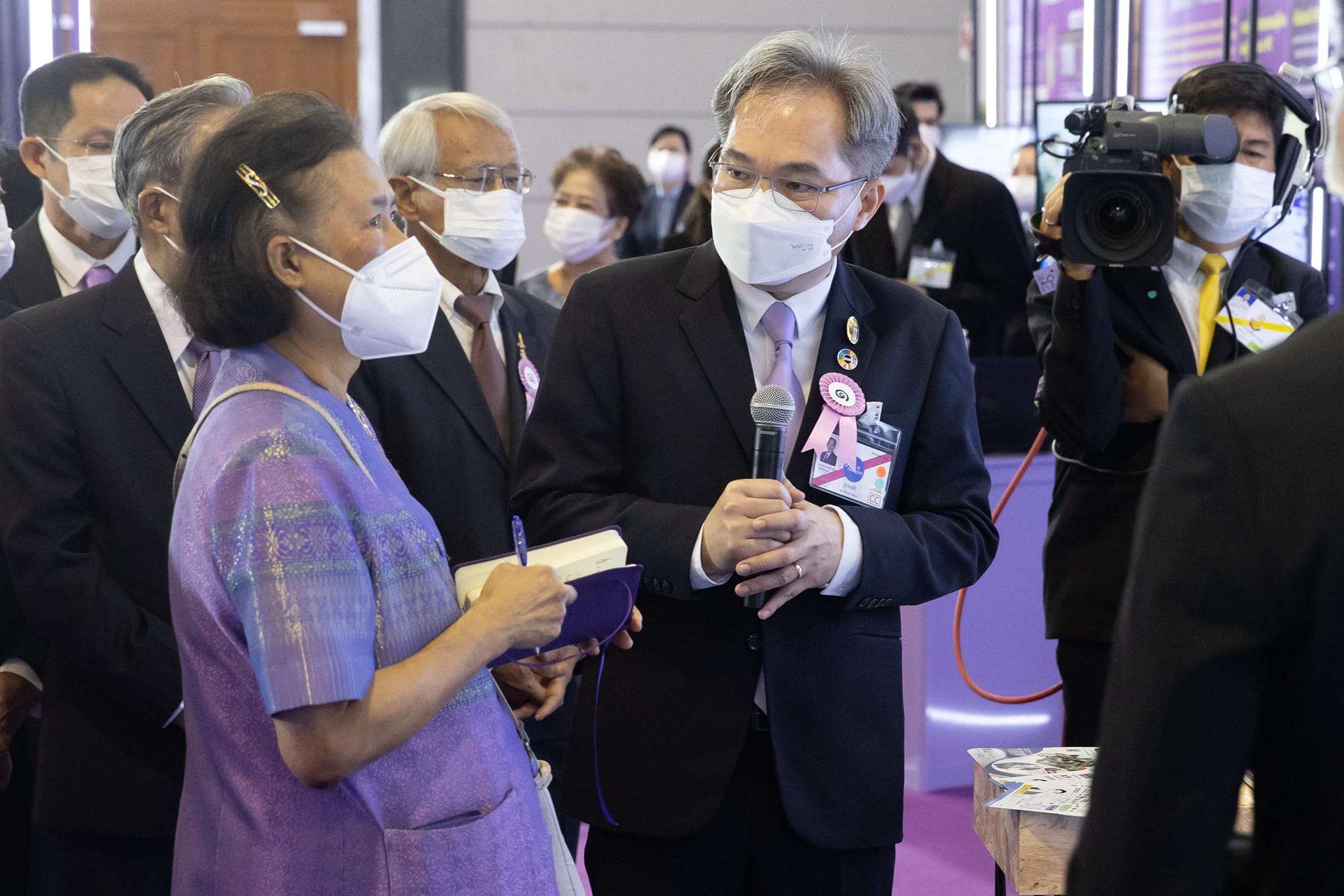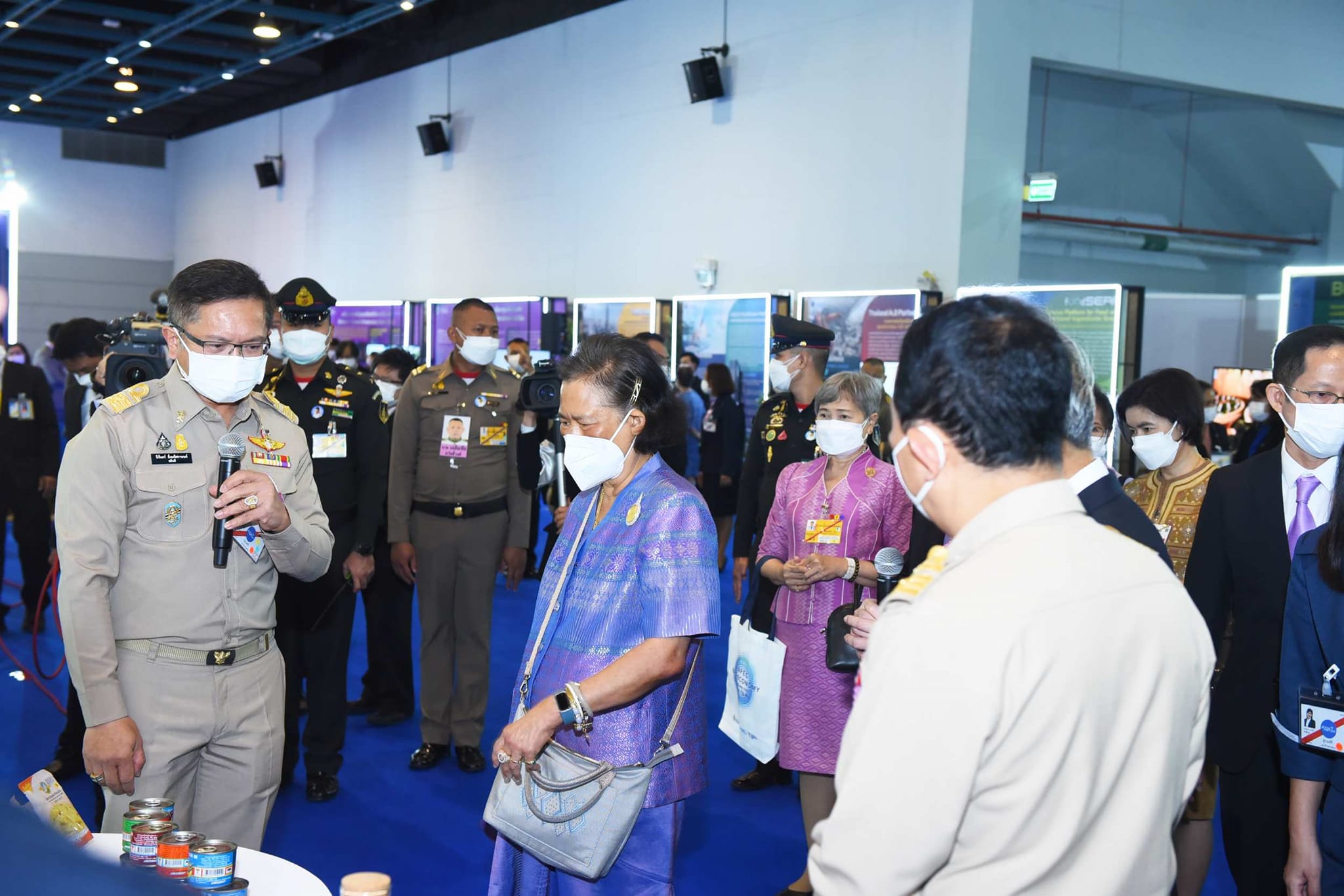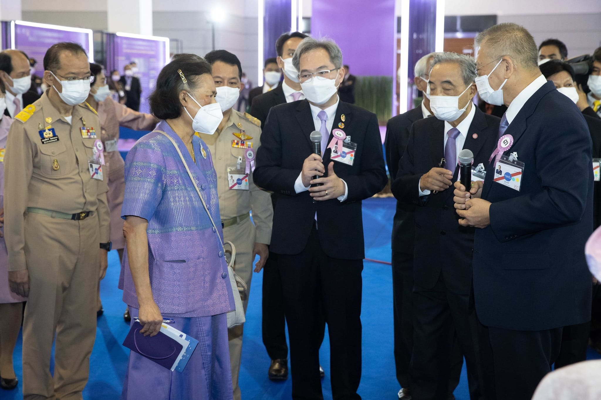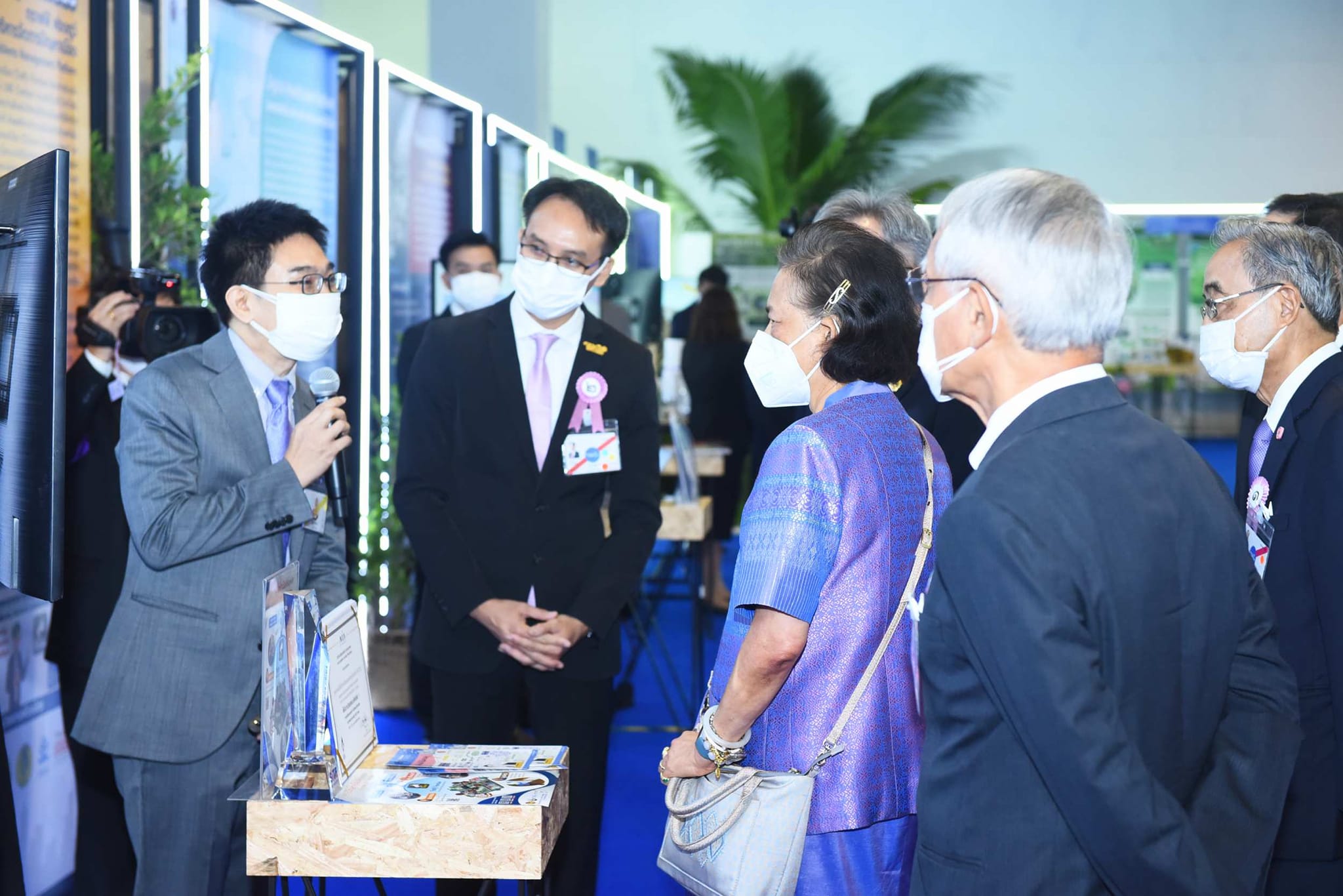 ศาสตราจารย์ ดร.ชูกิจ ลิมปิจำนงค์ ผู้อำนวยการสำนักงานพัฒนาวิทยาศาสตร์และเทคโนโลยีแห่งชาติ (สวทช.) กราบบังคมทูลรายงานว่า การประชุมประจำปี สวทช. ในปีนี้เป็นไปตามนโยบายที่รัฐบาลประกาศขับเคลื่อนประเทศตามโมเดลเศรษฐกิจใหม่ BCG Economy Model (Bio-Circular-Green Economy หรือเศรษฐกิจชีวภาพ-เศรษฐกิจหมุนเวียน-เศรษฐกิจสีเขียว) ซึ่ง สวทช. จัดขึ้นเป็นครั้งที่ 18 โดยปีนี้จัดแบบออนไซต์เต็มรูปแบบ ทั้งกิจกรรมสัมมนาวิชาการ นิทรรศการ กิจกรรมเยี่ยมชม กิจกรรมนำเสนอเชิงธุรกิจ และกิจกรรมวิทยาศาสตร์สำหรับเด็กและเยาวชน โดยตั้งเป้าให้เป็นเวทีในการนำเสนอผลงานของบุคลากรวิจัย แลกเปลี่ยนประสบการณ์ และเรียนรู้จากเครือข่ายพันธมิตรทั้งภาครัฐ เอกชน และประชาชน สนับสนุนให้เกิดการพัฒนาและขับเคลื่อนเศรษฐกิจ ควบคู่ไปกับการพัฒนาสังคมและการรักษาสิ่งแวดล้อมอย่างสมดุล มั่นคง และยั่งยืนภายใต้โมเดลเศรษฐกิจ BCG พ.ศ. 2564-2570 ซึ่งการประชุมฯ ครั้งนี้แบ่งการนำเสนอออกเป็น 4 การขับเคลื่อน และ 4 การส่งเสริม