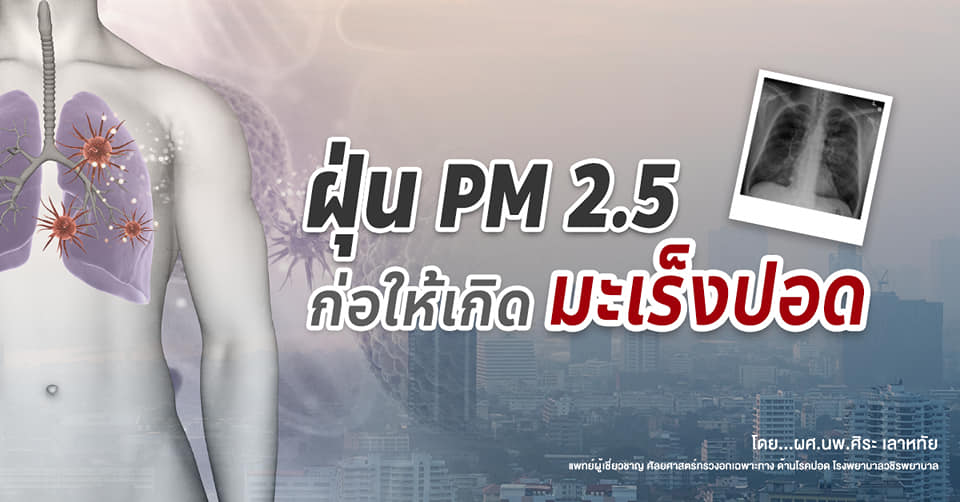 นอกจากนี้ยังแนะนำการติดตามข่าวสารเกี่ยวกับฝุ่น PM 2.5 และปฏิบัติตามคำแนะนำเป็นสิ่งสำคัญที่สุด ในช่วงเวลาที่เกิดปัญหามลพิษทางอากาศมากๆ สำหรับผู้ป่วยท่านใดที่ต้องการจะปรึกษาด้านการผ่าตัดมะเร็งปอดสามารถเข้ารับการปรึกษาได้ที่เพจเฟซบุ๊ก “ผ่าตัดปอด” หรือสอบถามข้อมูลได้ที่ lineofficial : @lungsurgeryth