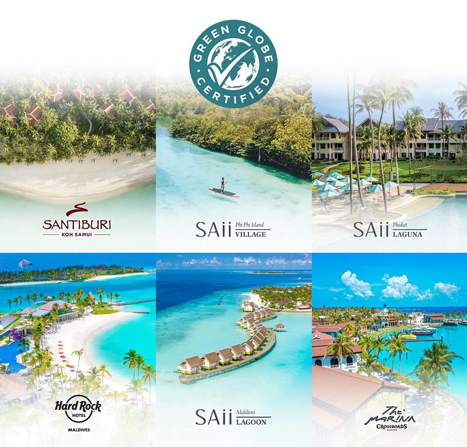 บริษัท เอส โฮเทล แอนด์ รีสอร์ท จำกัด (มหาชน) (S Hotels and Resorts Public Company Limited: SHR) ผู้นำด้านการบริหารงานโรงแรมระดับสากลในเครือ สิงห์ เอสเตท ตอกย้ำการเป็นผู้นำธุรกิจโรงแรมที่เป็นมิตรกับสิ่งแวดล้อม ด้วยการนำพาโรงแรมจากประเทศไทยและมัลดีฟส์ ได้แก่ ทราย ลากูน่า ภูเก็ต (SAii Laguna Phuket) ทราย พีพี ไอส์แลนด์ วิลเลจ (SAii Phi Phi Island Village) สันติบุรี เกาะสมุย (Santiburi Koh Samui) และโครงการครอสโรดส์ มัลดีฟส์ (CROSSROADS Maldives) คว้าการรับรองจาก Green GlobeTM ประกาศนียบัตรด้านความยั่งยืนในอุตสาหกรรมการท่องเที่ยวระดับสากล โดยเป็นมาตราฐานที่ได้รับการยอมรับจากสภาการท่องเที่ยวอย่างยั่งยืนระดับโลก (Global Sustainable Tourism Council) และองค์การการท่องเที่ยวโลกแห่งสหประชาชาติ (UN World Tourism Organisation - UNWTO)