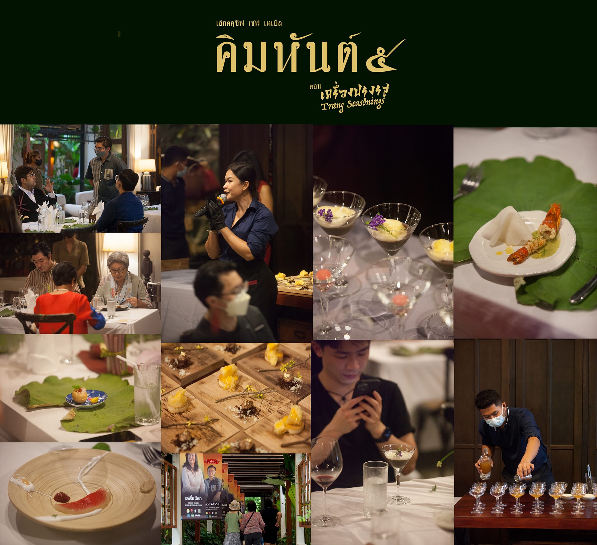คิมหันต์ ๕: การรวมตัวกันของคนทำอาหารและเครื่องดื่มร่วมกันนำเสนอ Chef's Table จากแรงบันดาลใจในบรรยากาศหน้าฝนสู่หน้าร้อน จากป่าสู่ทะเลในเมืองพหุวัฒนธรรมอย่าง "ตรัง" ในชื่อว่า คิมหันต์ ๕ : ตอนเครื่องปรุงรส (Trang Seasonings) ปีนี้หยิบยกเครื่องปรุงจากจังหวัดตรังมาเป็นพระเอกในการรังสรรค์เมนูที่ได้แรงบันดาลใจจากเรื่องราวอาหารแบบกุ๊กช็อปส่วนหนึ่งของเส้นทางแห่งอาหารร่วมสมัยของตรัง เมืองแห่งวัฒนธรรมลูกผสม กับการยกระดับรสชาติที่คุ้นเคยให้พิเศษยิ่งกว่า