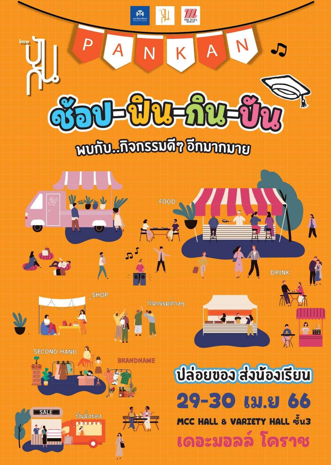 เดอะมอลล์ โคราช ร่วมกับ ร้านปันกัน ภายใต้การดำเนินงานของ มูลนิธิยุวพัฒน์ จัดงาน “ปล่อยของ ส่งน้องเรียน By โคราชปันกัน” 10 ปี โคราชปันกัน ชวนช้อปสินค้าทั้งมือหนึ่ง มือสอง ของแบรนด์เนม พร้อมร่วมประมูลสินค้าพิเศษ ของแบรนด์เนมจากเซเลบริตี้ใจบุญมากมาย รายได้ทั้งหมดมอบเป็นทุนการศึกษาแก่เด็กที่ขาดโอกาสภายใต้การดูแลของมูลนิธิฯ และสนับสนุนกิจกรรม ด้านการศึกษา ดนตรี ศิลปะ และกีฬา สำหรับเยาวชนในจังหวัดนครราชสีมา งานจัดในวันเสาร์ - อาทิตย์ ที่ 29 และ 30 เมษายน ณ ห้อง MCC HALL ชั้น 3 เดอะมอลล์ นครราชสีมา