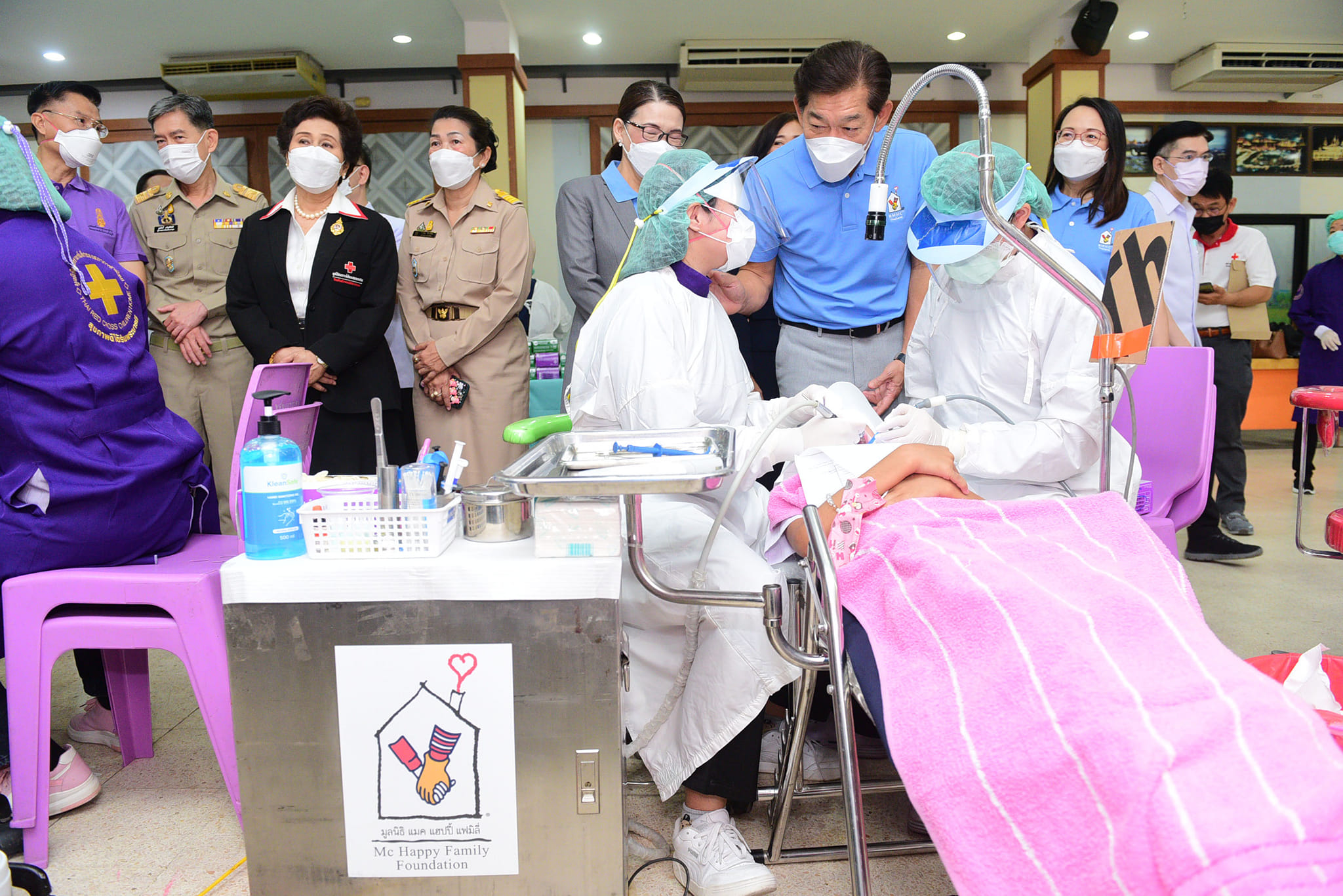 ม.ร.ว. จิยากร อาภากร เสสะเวช กรรมการอำนวยการ มูลนิธิสงเคราะห์เด็กของสภากาชาดไทย และนายวิชา พูลวรลักษณ์ ประธานกรรมการ มูลนิธิแมค แฮปปี้ แฟมิลี่ นางสาวกิตติวรรณ อนุเวชสกุล รองประธานกรรมการ มูลนิธิแมค แฮปปี้ แฟมิลี่ และประธานกรรมการบริหารบริษัท แมคไทย จำกัด พร้อมด้วยนายสุรศักดิ์ เจริญศิริโชติ ผู้ว่าราชการจังหวัดนครปฐม ตลอดจนคณะผู้บริหารจากบริษัท แมคไทย จำกัด ร่วมเปิดโครงการฯ และเยี่ยมชมให้กำลังใจเหล่าพันธมิตรจิตอาสาจาก โรงพยาบาลทันตกรรมมหาจักรีสิรินธร มูลนิธิ ทันตแพทย์เอกชน ประเทศไทย ที่ได้มาร่วมสร้างโอกาสแก่เด็กในพื้นที่ห่างไกลเข้าถึงการบริการทางการแพทย์ด้านทันตกรรม ตรวจสุขภาพฟันฟรี ครอบคลุมไปจนถึงการส่งเสริมให้เด็กและเยาวชนมีความรู้ความเข้าใจในการดูแลรักษาทันตอนามัยของตนเอง โดยไม่เสียค่าใช้จ่ายใด ๆ ณ โรงเรียนพระตำหนักสวนกุหลาบ มหามงคล อ.พุทธมณฑล จ.นครปฐม ซึ่งมีกำหนดการออกให้บริการแก่เด็กและเยาวชนในพื้นที่ของจังหวัดนครปฐม ตั้งแต่วันที่ 23 – 26 พฤษภาคม 2566