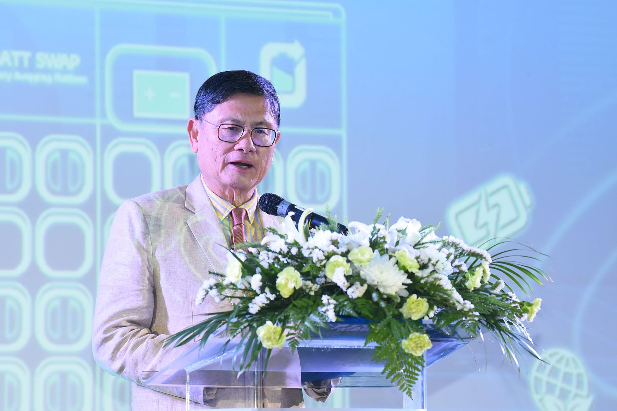 ศาสตราจารย์ (พิเศษ) ดร.เอนก เหล่าธรรมทัศน์ รัฐมนตรีว่าการกระทรวง อว. กล่าวว่า รู้สึกยินดีอย่างยิ่งที่ได้รับเกียรติ เป็นประธานในพิธีเปิดการทดสอบภาคสนามจากผลงานโครงการวิจัยและพัฒนาแพลตฟอร์มแพ็กแบตเตอรี่มาตรฐานแบบสับเปลี่ยนสำหรับมอเตอร์ไซค์ไฟฟ้าเพื่อยกระดับอุตสาหกรรมยานยนต์สมัยใหม่ในประเทศไทย ซึ่งเป็นความสำเร็จของระบบนิเวศวิจัยและนวัตกรรมที่มีการทำงานร่วมกันระหว่างภาครัฐและเอกชนที่เกี่ยวข้อง จนเกิดผลงานที่ตอบโจทย์ภาคเอกชนและกลไกขับเคลื่อนเศรษฐกิจของประเทศ จะเห็นได้ว่าในปัจจุบัน ประเทศไทยมีจักรยานยนต์เป็นยานพาหนะที่ได้รับความนิยมและมีจำนวนมากขึ้นเรื่อย ๆ ส่งผลให้มีการปล่อยก๊าซคาร์บอนไดออกไซด์ที่เพิ่มขึ้น จึงทำให้ต้องมีความตระหนัก และต้องผลักดันให้ประเทศไทยเข้าสู่การเป็นสังคมคาร์บอนต่ำ เพื่อให้สอดคล้องกับแผนพัฒนาอุตสาหกรรมยานยนต์ไฟฟ้า (Roadmap 30@30) ที่ตั้งเป้าหมายที่จะผลิตยานยนต์ที่ปล่อยมลพิษเป็นศูนย์อย่างน้อย 30% ภายในปี ค.ศ. 2030 โครงการนี้จะแสดงให้เห็นถึงการเกิดนวัตกรรมที่ตอบโจทย์ผู้ใช้คือภาคเอกชน โดยมีรัฐบาลผลักดัน และยังแสดงถึงการเพิ่มขีดความสามารถของการสร้างองค์ความรู้ และพัฒนาบุคลากรภาคการผลิตไปพร้อมๆกัน ทั้งนี้ขอบคุณทุกภาคส่วนที่มีส่วนร่วมและสนับสนุน จนมาถึงการทดสอบภาคสนาม ซึ่งถือว่าเป็นก้าวสำคัญที่ส่งเสริมให้เกิดการเปลี่ยนผ่านสู่ยานยนต์ไฟฟ้าและพัฒนาสถานีสับเปลี่ยนแบตเตอรี่สำหรับจักรยานยนต์ไฟฟ้า เพื่อพัฒนาข้อกำหนดและระเบียบที่เกี่ยวข้องไปสู่เชิงพาณิชย์