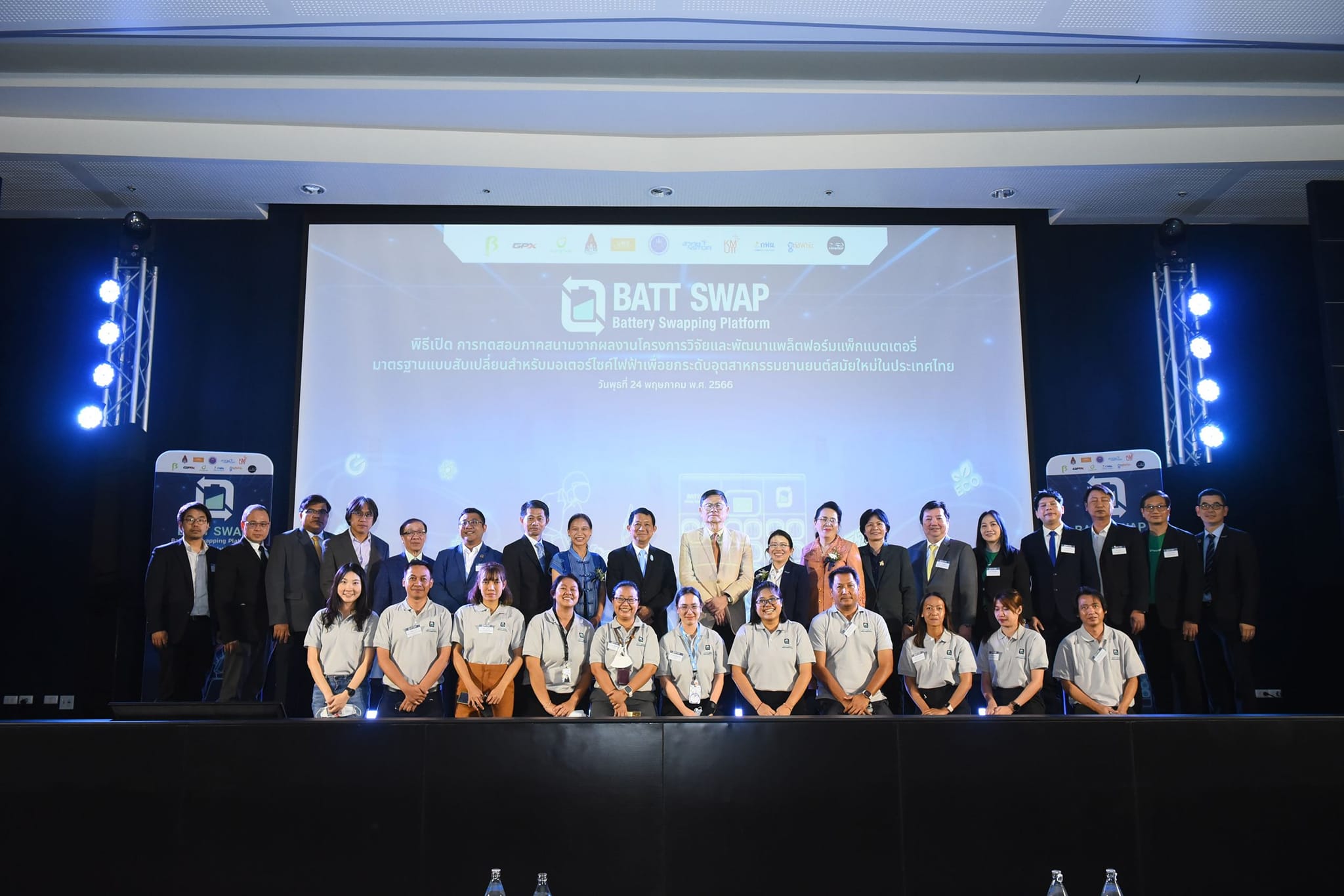 “โครงการวิจัยและพัฒนาแพลตฟอร์มแพ็กแบตเตอรี่มาตรฐานแบบสับเปลี่ยนสำหรับมอเตอร์ไซค์ไฟฟ้า เพื่อยกระดับอุตสาหกรรมยานยนต์สมัยใหม่ในประเทศไทย” โครงการดังกล่าว มีสำนักงานสภานโยบายการอุดมศึกษา วิทยาศาสตร์ วิจัยและนวัตกรรมแห่งชาติ โดย หน่วยบริหารและจัดการทุนด้านการเพิ่มความสามารถในการแข่งขันของประเทศ (บพข.) เป็นผู้ให้ทุน และมีบริษัท เบต้า เอ็นเนอร์ยี่ โซลูชั่น จำกัด บริษัท จีพี มอเตอร์ (ประเทศไทย) จำกัด บริษัท บางจาก คอร์ปอเรชั่น จำกัด (มหาชน) การไฟฟ้าฝ่ายผลิตแห่งประเทศไทย บริษัท ไอ-มอเตอร์แมนูแฟคเจอริ่ง จำกัด และบริษัท กริดวิซ (ประเทศไทย) จำกัด เป็นผู้ให้ทุนร่วม รวมทั้งดำเนินการวิจัยและพัฒนาร่วมกับ มหาวิทยาลัยเทคโนโลยีพระจอมเกล้าธนบุรี และมหาวิทยาลัยขอนแก่น เป็นการแสดงให้เห็นชัดเจนว่า การผนึกกำลังของทั้ง 9 หน่วยงาน ก่อให้เกิดการพัฒนาระบบนิเวศยานยนต์ไฟฟ้าในไทยจนออกมาเป็นผลสำเร็จ ซึ่งก็คือแพล็ตฟอร์มแพ็กแบตเตอรี่สำหรับมอเตอร์ไซค์ไฟฟ้า เพื่อนำไปสู่การยกระดับอุตสาหกรรมยานยนต์สมัยใหม่ในประเทศไทย เกิดการลงทุนด้านวิจัยและพัฒนา