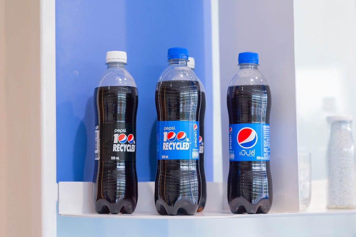 ในปัจจุบัน ซันโทรี่ เป๊ปซี่โค ประเทศไทย ถือเป็นเจ้าแรกและเจ้าเดียวในตลาดน้ำอัดลมไทย ที่นำร่องใช้ขวด rPET 100% กับผลิตภัณฑ์เป๊ปซี่และเป๊ปซี่ไม่มีน้ำตาลขนาด 550 มล. โดยวางจำหน่ายในร้านค้าปลีกสมัยใหม่ (Modern Trade) และร้านสะดวกซื้อ (Convenient Store) ทั้งนี้ บริษัทฯ ยังคงมีแผนการใช้ขวด rPET 100% ตลอดทั้งปี ซึ่งจะขยายไปสู่กลุ่มผลิตภัณฑ์และครอบคลุมช่องทางจำหน่ายอื่นๆ ต่อไป