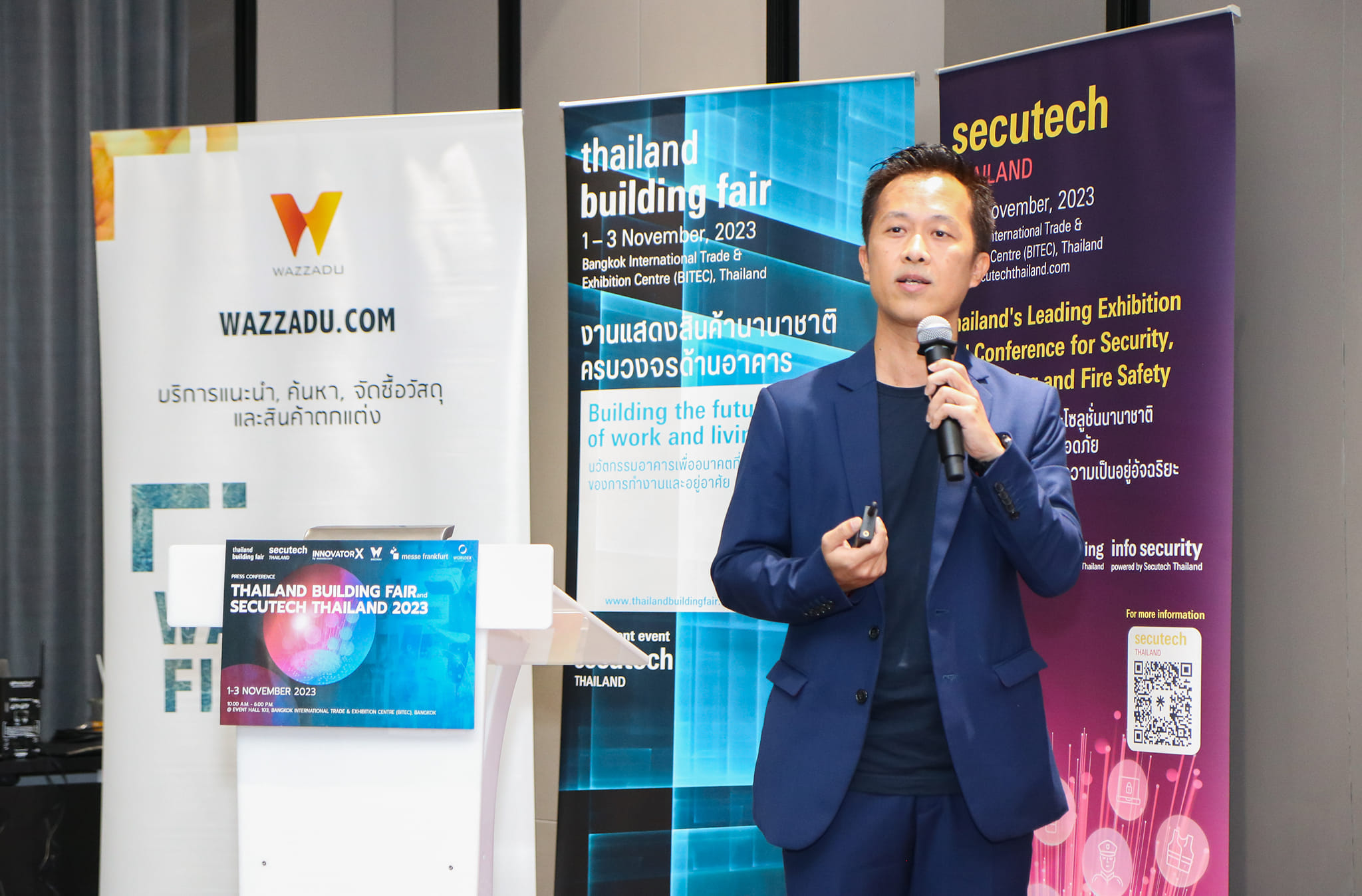 เมสเซ่ แฟรงเฟิร์ต และ เวิลด์เด็กซ์ จี.อี.ซี. ร่วมมือกับ วัซซาดุ ดอท คอม แถลงข่าวจัดงาน Thailand Building Fair และ Secutech Thailand งานแสดงสินค้านานาชาติครบวงจรด้านอาคาร และ งานแสดงเทคโนโลยีและโซลูชันนานาชาติด้านระบบรักษาความปลอดภัย พร้อมกับ InnovatorX 2023 เวทีการทอล์คด้าน Building & Technology และ Total Security Solutions จากนวัตกรผู้เชี่ยวชาญทั้งจากในประเทศและต่างประเทศ ครบมากที่สุดครั้งแรกในประเทศไทย โดยจะจัดขึ้นระหว่างวันที่ 1-3 พฤศจิกายน 2566 ณ ฮอลล์ EH103 ศูนย์นิทรรศการและการประชุมไบเทค บางนา
