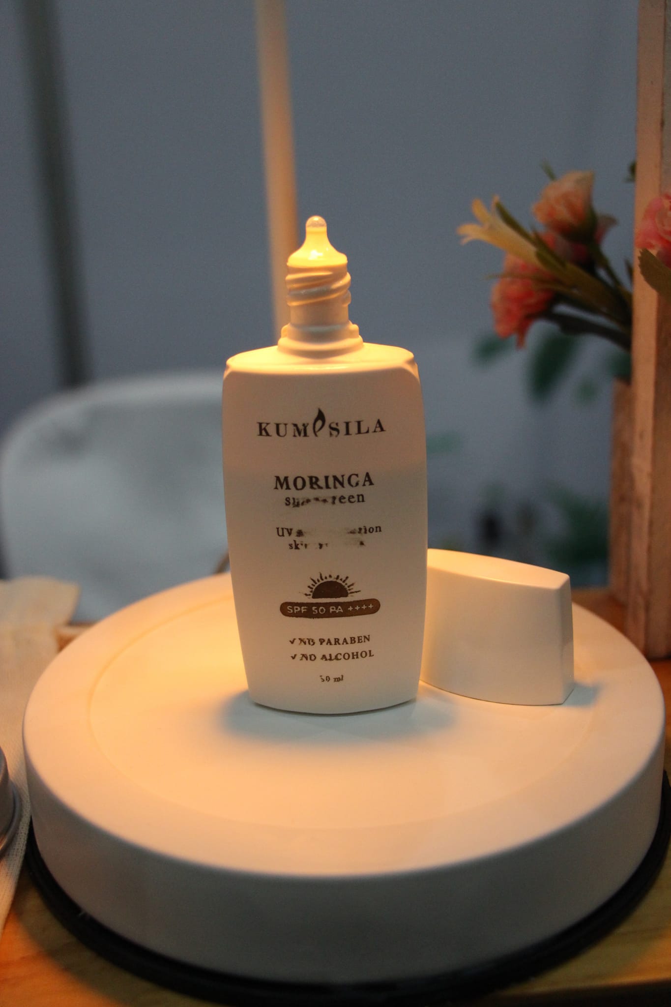 ครีมกันแดดมะรุม ( KUMSILA MORINGA SUNSCREEN ) ผลิตภัณฑ์ครีมกันแดดที่มีสารสกัดจากมะรุม เป็นครีมกันแดดเนื้อน้ำนม สำหรับผิวหน้า ปกป้องผิวจากแสงแดดพร้อมบำรุง และปกป้องครบทั้ง UVA และ UVB ซึ่งเป็นต้นเหตุของความหมองคล้ำ และริ้วรอยก่อนวัย ช่วยเสริมสร้างภูมิคุ้มกันให้กับผิว ด้วยคุณสมบัติของเนื้อครีมที่บางเบาซึมเข้าสู่ผิวได้อย่างรวดเร็ว ไม่เหนียวเหนอะหนะ ไม่ทำให้ผิวหน้ามันวาว ไม่ทิ้งคราบหลังเซตตัว พร้อมบำรุงผิวด้วยคุณค่าจากสารสกัดมะรุม ช่วยให้ผิวกระจ่างใส เรียบเนียนผสมผสานคุณค่าจากสารสกัดใบย่านางซึ่งจะช่วยปรับสมดุลให้กับผิวและคุณค่าจากวิตามินอี ช่วยบำรุงผิวให้ชุ่มชื่นลดการเกิดริ้วรอย เหมาะสำหรับทุกสภาพผิวแม้ผิวแพ้ง่าย ใช้ได้ทุกวันหลังทามอยส์เจอไรเซอร์ หรือก่อนแต่งหน้า สามารถทาซ้ำระหว่างวันโดยไม่ต้องลบเครื่องสำอางออก