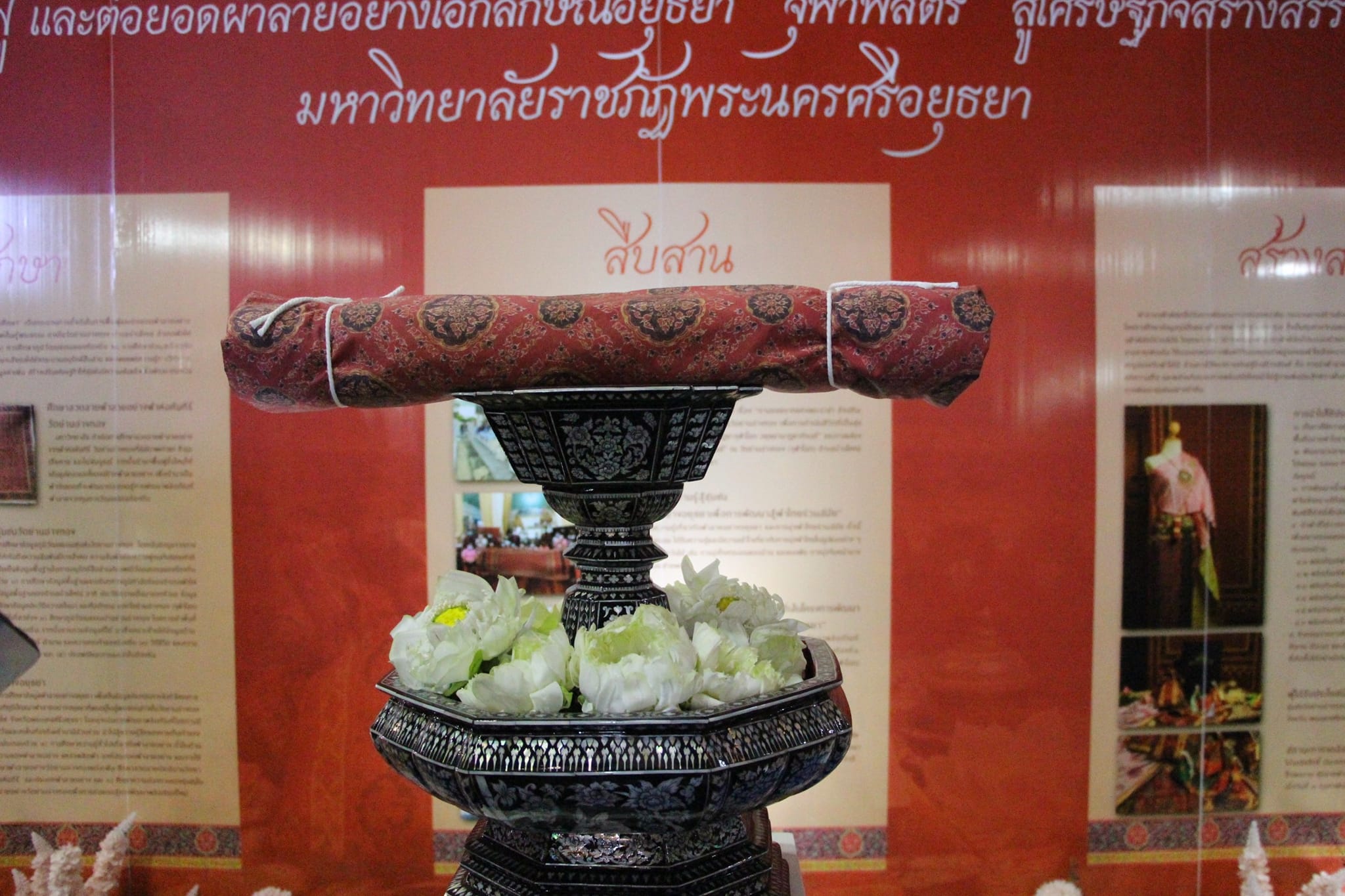 โครงการฟื้นฟูและต่อยอดผ้าลายอย่างเอกลักษณ์อยุธยา “จุฬาพัสตร์” สู่เศรษฐกิจสร้างสรรค์อย่างยั่งยืน โดย อาจารย์ ดร.สุรินทร์ ศรีสังข์งาม ผู้อำนวยการสถาบันอยุธยาศึกษา มหาวิทยาลัยราชภัฏพระนครศรีอยุธยา ผลงานวิจัยที่ได้คิดค้นและนำมาจัดแสดงในงาน มหกรรมงานวิจัยแห่งชาติ 2566 หรือ Thailand Research Expo 2023 ซึ่งจัดโดย สำนักงานการวิจัยแห่งชาติ (วช.) กระทรวงการอุดมศึกษา วิทยาศาสตร์ วิจัยและนวัตกรรม ร่วมกับหน่วยงานเครือข่ายในระบบวิจัยทั่วประเทศที่ผ่านมา เป็นอีกหนึ่งผลงานที่มุ่งให้เกิดการใช้ประโยชน์งานวิจัยและนวัตกรรม เพื่อการพัฒนาประเทศในมิติต่าง ๆ ทั้งด้านเศรษฐกิจ สังคม ชุมชน