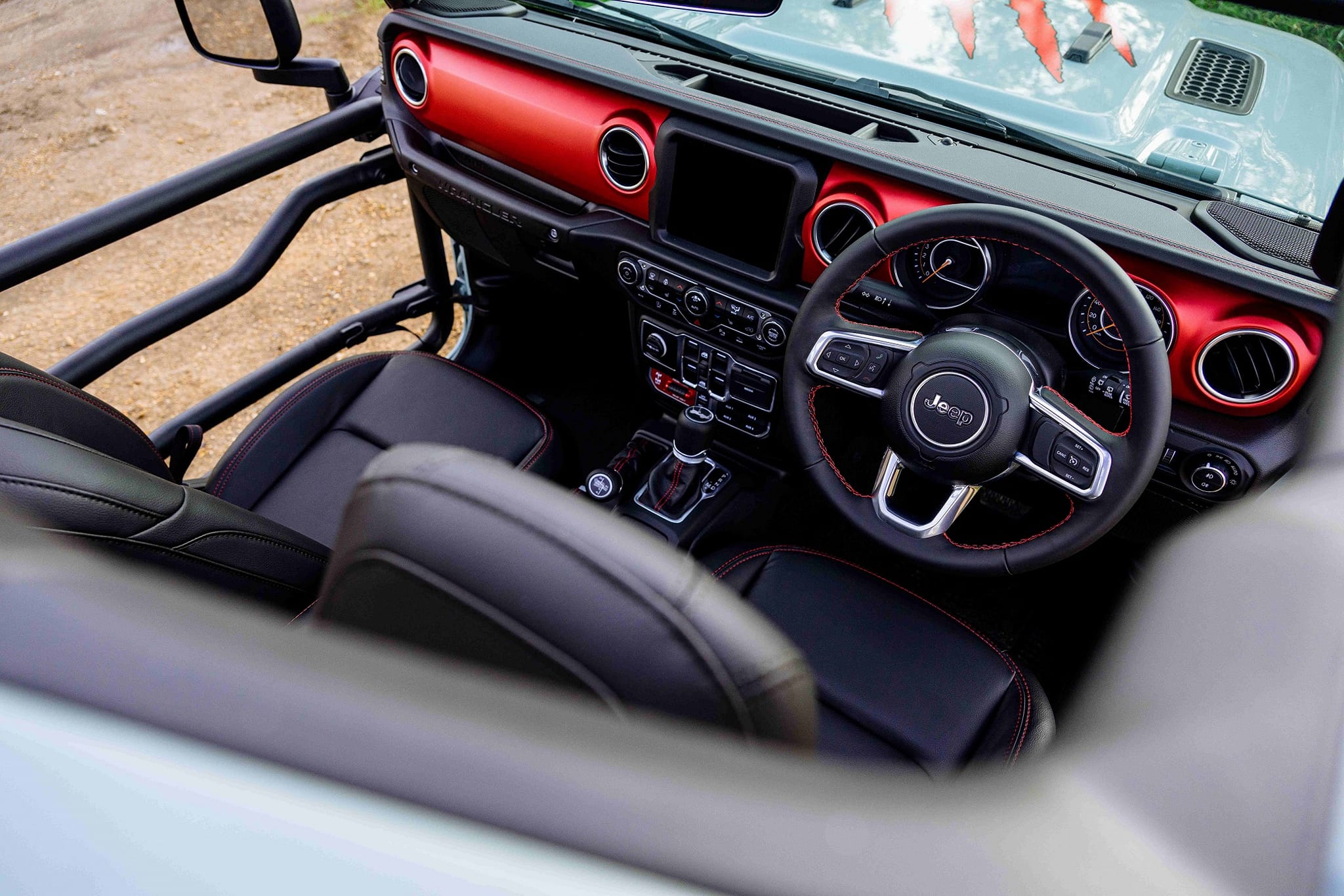 ขณะที่อุปกรณ์ตกแต่งอื่นๆ ที่มีในรุ่น Monster Edition เดิม ก็ยังคงไว้แบบจัดเต็ม อาทิ กันชนหน้าเหล็กกล้าออฟ-โรด แบบ 3 ชิ้น, สปอตไลท์กันชนหน้าออฟ-โรด แอลอีดี ขนาด 7 นิ้ว พร้อมโรลบาร์, รอกไฟฟ้า Jeep Performance Parts ออกแบบพิเศษสำหรับ แรงเลอร์ รูบิคอน, ท่ออากาศออฟ-โรด, ประตูผู้โดยสารแบบโรลบาร์ (Tube-Doors) พร้อมมือจับด้านบน, โช้กอัพ FOX ยกสูง 2 นิ้ว และอื่นๆอีกมากมาย มาพร้อมช่วงล่างที่มีฟังก์ชั่นพิเศษ ทีมีให้สัมผัสเฉพาะในรถยนต์ จี๊ป กับความสามารถในการปลดเหล็กกันโคลง (Sway Bar) อัตโนมัติ เพิ่มความยืดหยุ่นและช่วยให้ล้อสัมผัสกับพื้นตลอดเวลา