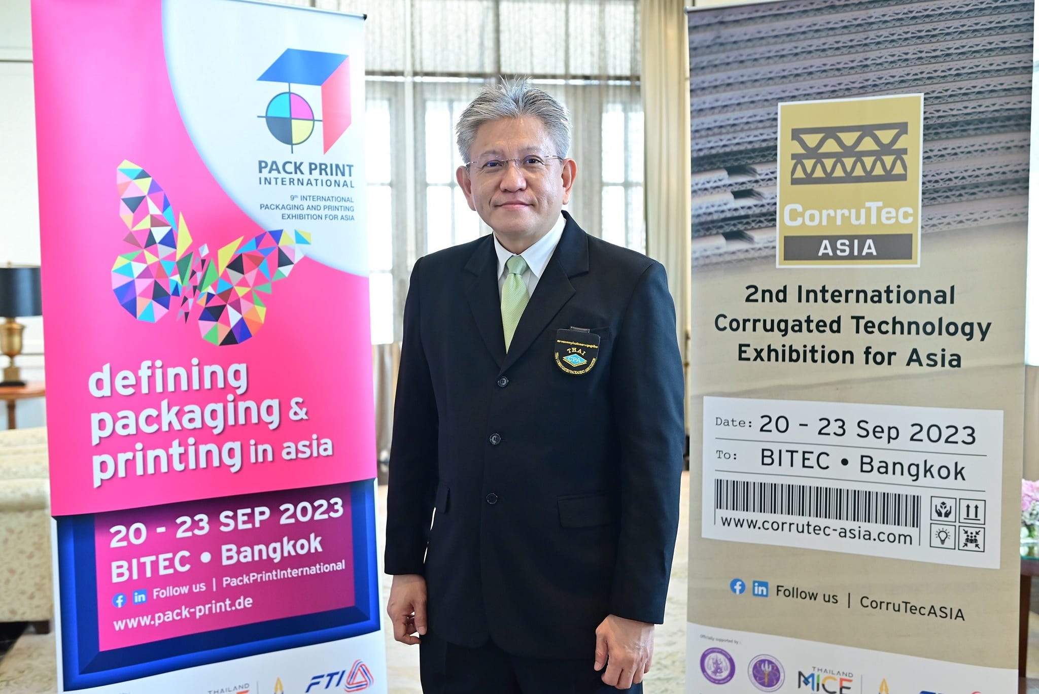 สภาอุตสาหกรรมแห่งประเทศไทย พร้อมด้วย สมาคมการพิมพ์ไทย สมาคมการบรรจุภัณฑ์ไทย สมาคมบรรจุภัณฑ์กระดาษลูกฟูกไทย ผนึก บริษัท เมสเซ่ ดุสเซลดอร์ฟ เอเชีย โชว์ความพร้อมการจัดงาน Pack Print International 2023 และ Corrutec Asia 2023” หรือ งานมหกรรมแสดงสินค้านานาชาติด้านอุตสาหกรรมบรรจุภัณฑ์การพิมพ์ครั้งที่ 9 และกระดาษลูกฟูกแห่งภูมิภาคเอเชีย ครั้งที่ 2 ที่จะจัดขึ้นระหว่างวันที่ 20 - 23 กันยายน 2566 ตอกย้ำความแข็งแกร่งและฉายศักยภาพการเป็นผู้นำด้านการผลิตที่โดดเด่นที่สุดในอาเซียน เพื่อเปิดโลกอนาคตแห่งนวัตกรรมสุดล้ำ อาทิ ปัญญาประดิษฐ์ (AI) เทคโนโลยีดิจิทัล (Digital Economy) บรรจุภัณฑ์พรีเมียม (Premium Design) เทคโนโลยีที่ช่วยเพิ่มความปลอดภัย (Safety & Security) และบรรจุภัณฑ์เพื่อความยั่งยืน (Sustainability) เป็นต้น พร้อมชูกลยุทธ์ส่งเสริมความยั่งยืนของทั้ง 3 ภาคอุตสาหกรรม ได้แก่ อุตสาหกรรมการพิมพ์กับแนวคิดเชื่อมโยงระหว่างสื่อสิ่งพิมพ์กับโลกดิจิทัล อุตสาหกรรมการบรรจุภัณฑ์ที่พร้อมผลักดันด้านเทคโนโลยีเพื่อออกแบบบรรจุภัณฑ์ฟังชันก์สุดล้ำ และบรรจุภัณฑ์กระดาษลูกฟูกที่ชูโซลูชั่นต่อยอดความยั่งยืนระยะยาวด้วยแนวคิดการดำเนินธุรกิจอย่างยั่งยืน และแนวคิดเศรษฐกิจหมุนเวียน เชื่อมั่นอุตสาหกรรมการพิมพ์และบรรจุภัณฑ์ ปี 67 เติบโตขึ้น 10%