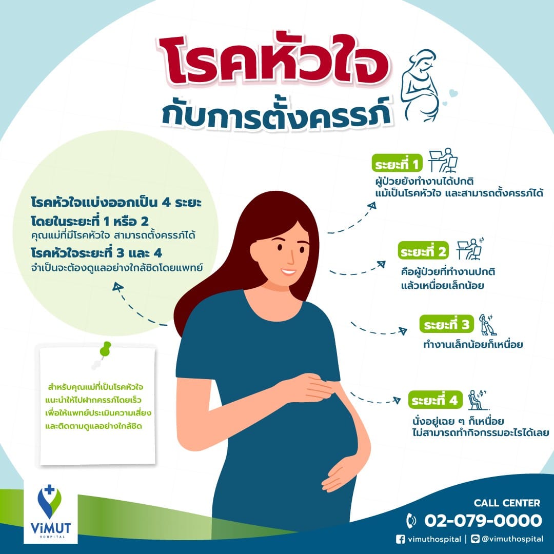 “ต้องอธิบายก่อนกว่า โรคหัวใจนั้นแบ่งออกเป็น 4 ระยะ ได้แก่ ระยะที่ 1 ผู้ป่วยยังทำงานได้ปกติแม้เป็นโรคหัวใจ ระยะที่ 2 คือ ผู้ป่วยที่ทำงานปกติแล้วเหนื่อยเล็กน้อย ระยะที่ 3 คือ ทำงานเล็กน้อยก็เหนื่อย และระยะที่ 4 นั่งอยู่เฉย ๆ ก็เหนื่อย ไม่สามารถทำกิจกรรมอะไรได้เลย โดยในระยะที่ 1 หรือ 2 คุณแม่ที่มีโรคหัวใจสามารถตั้งครรภ์ได้ ที่น่ากังวลคือโรคหัวใจระยะที่ 3 และ 4 เนื่องจากส่งผลกระทบต่อการใช้ชีวิตของคุณแม่อย่างมาก จำเป็นจะต้องดูแลอย่างใกล้ชิดโดยแพทย์” นพ.สุวาณิช เตรียมชาญชูชัย อธิบาย