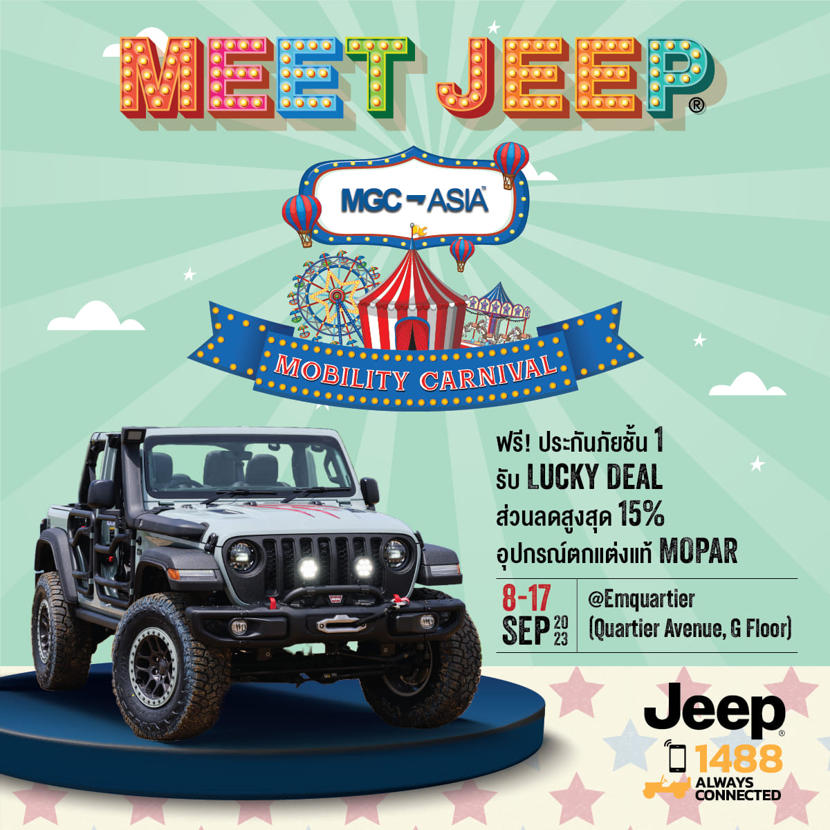 ปิดท้ายที่ จี๊ป ไลอ้อน ออโตโมบิล ผู้จำหน่ายรถยนต์ จี๊ป อย่างเป็นทางการแห่งแรกในประเทศไทย โชว์รุ่นพิเศษ จี๊ป แรงเลอร์ รูบิคอน ‘Monster+Edition’ สีเอ็กซ์คลูซีฟสำหรับปี 2566 ‘Earl Grey’ คันแรกในไทย มาพร้อมอุปกรณ์ตกแต่งระดับไฮเอ็นด์ แบรนด์ Mopar ลิขสิทธิ์แท้ทั้งคัน และ จี๊ป กลาดิเอเตอร์ รูบิคอน รถอเนกประสงค์ทรงพลัง สามารถลากจูงได้ถึง 2,721 กิโลกรัม โปรแกรมบำรุงรักษา 3 ปี หรือ 55,000 กิโลเมตร และบริการช่วยเหลือฉุกเฉินแบบพรีเมียม นาน 3 ปี พร้อมแคมเปญพิเศษ ฟรี! ประกันภัยชั้นหนึ่ง และรับสิทธิ์จับ Lucky Deal รับส่วนลดสูงสุด 15% สำหรับอุปกรณ์ตกแต่งแท้ Mopar* เมื่อจองรถภายในงานฯ