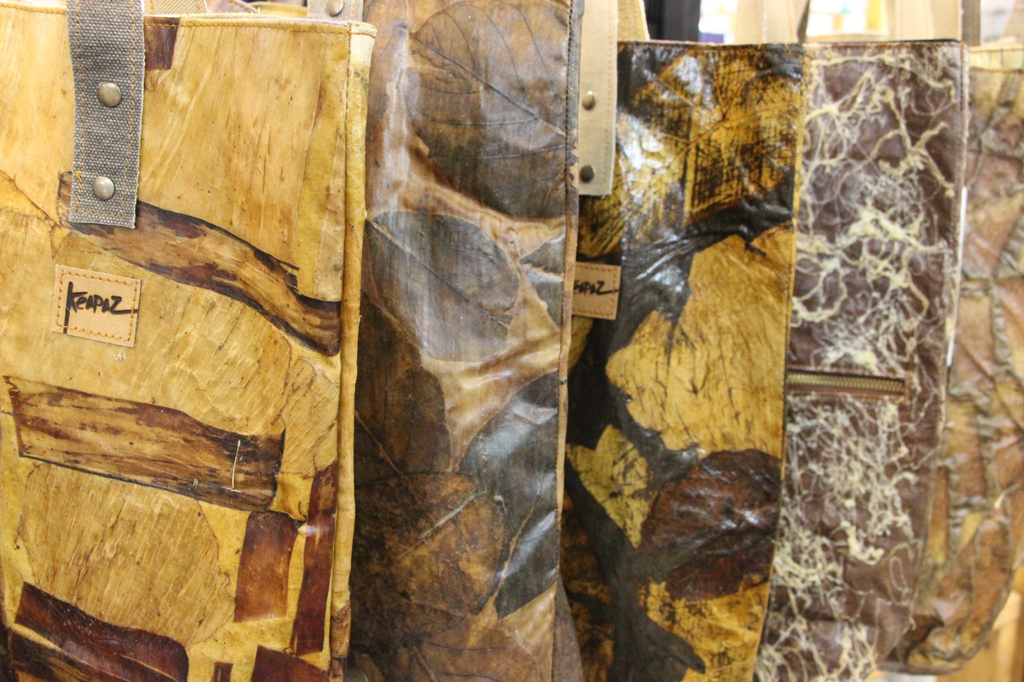 ในการรูปแบบการออกแบบมีทั้งออกแบบเอง หรือลูกค้าให้ไอเดียมา โดยมีขั้นตอนในการทำ เน้นความเป็นธรรมชาติ นำผ้ามาเป็นเบสเสร็จแล้วเอาวัสดุเหลือใช้มาทากาวติดลงบนแผ่นที่เราต้องการแล้วเคลือบด้วยกาวยางพารา ถ้าอยากให้แข็งแรงก็ทาหลายๆ รอบ จนแข็งแรงและเคลือบด้วยวัสดุที่เป็นสารเคมีเพื่อให้สามารถกันน้ำ กันแดด กันฝนด้วยอคิลิกที่นำมาเคลือบผลิตภัณฑ์อีกที สำหรับผลิตภัณฑ์ที่ได้จะมีความหลากหลาย เช่นกระเป๋าใส่สตางค์ กระเป๋าสะพายใส่โน๊ตบุ๊ค การออกแบบกระเป๋า ที่ทุกใบล้วนผลิตมาจากวัสดุธรรมชาติ และเป็นงานทำมือในทุกกระบวนการผลิต