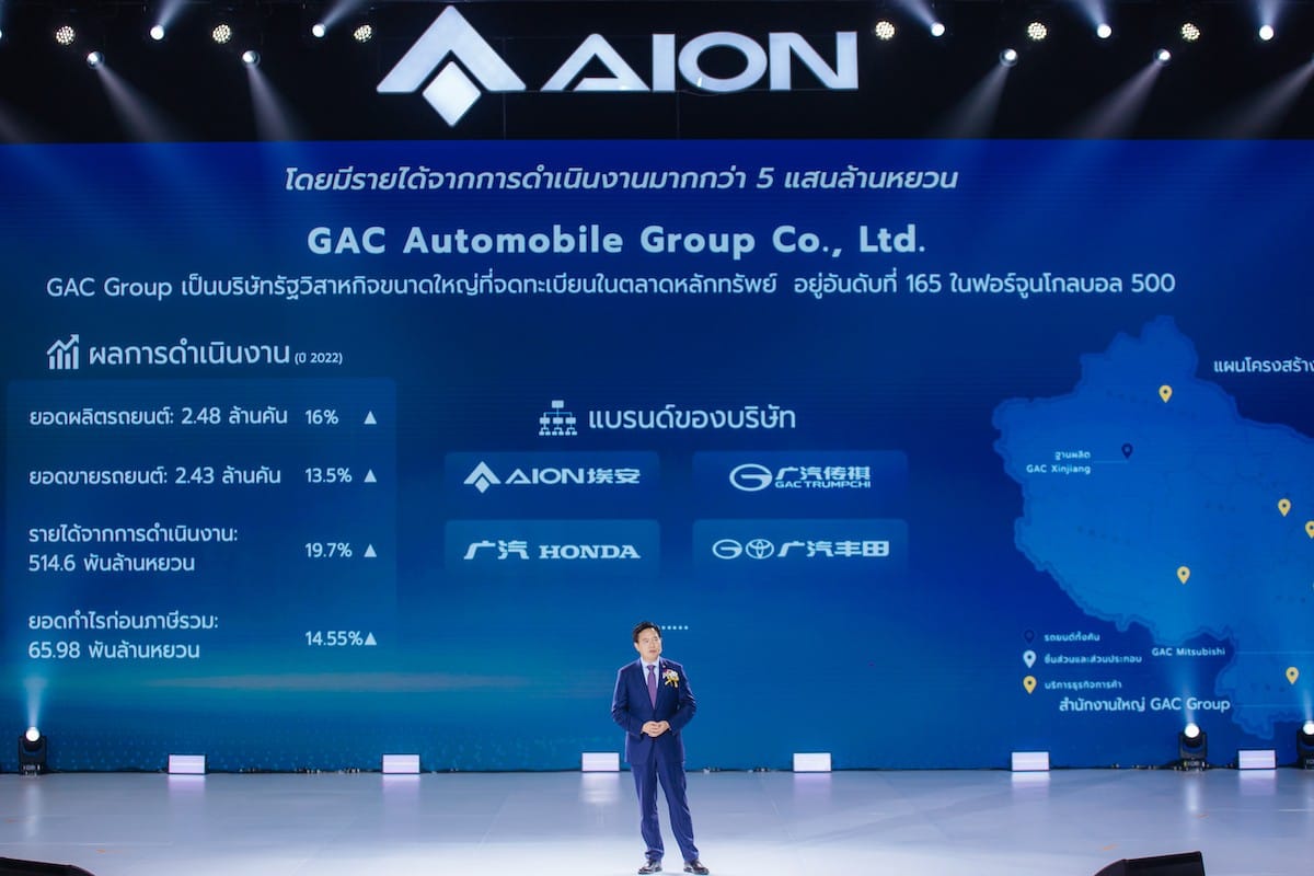 คุณกู่ ฮุ่ยหนาน (Gu Hui Nan) กรรมการผู้จัดการของ GAC AION New Energy Automotive Co., Ltd. กล่าวว่า "GAC Group เป็นบริษัทยักษ์ใหญ่ชั้นนำในอุตสาหกรรมยานยนต์ของจีนที่มีระบบนิเวศยานยนต์ที่สมบูรณ์แบบที่สุด โดยอยู่ในอันดับที่ 165 ของ Fortune Global 500 โดยมีการผลิตและยอดขายต่อปีมากกว่า 2.4 ล้านคัน และมีรายได้จากการดำเนินงานมากกว่า 5 แสนล้านหยวน ในฐานะองค์กรพลังงานอัจฉริยะภายใต้ GAC Group ทาง AION มุ่งเน้นไปที่การวิจัยนวัตกรรม โดยมีมูลค่าการผลิตมากกว่า 1 แสนล้านหยวน โดยครองอันดับหนึ่งในสามรถยนต์ขายดีในระดับโลกอย่างต่อเนื่อง พร้อมเดินหน้าขับเคลื่อนการเปลี่ยนแปลงให้แก่วงการยานยนต์"