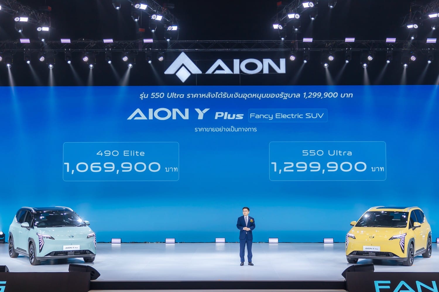 ภายในงานได้มีการประกาศราคาอย่างเป็นทางการของ AION Y Plus โดยรุ่น 490 Elite ราคา 1,069,900 บาท และรุ่น 550 Ultra ราคา 1,299,900 บาท นอกจากนี้ทาง AION ยังได้เตรียมสิทธิพิเศษให้ลูกค้าชาวไทย ได้แก่ การรับประกันสุดพิเศษ, สินเชื่อสุดพิเศษ, ฟรี! แท่นชาร์จสำหรับติดตั้งที่บ้าน และแพ็กเกจซุปเปอร์กิฟต์