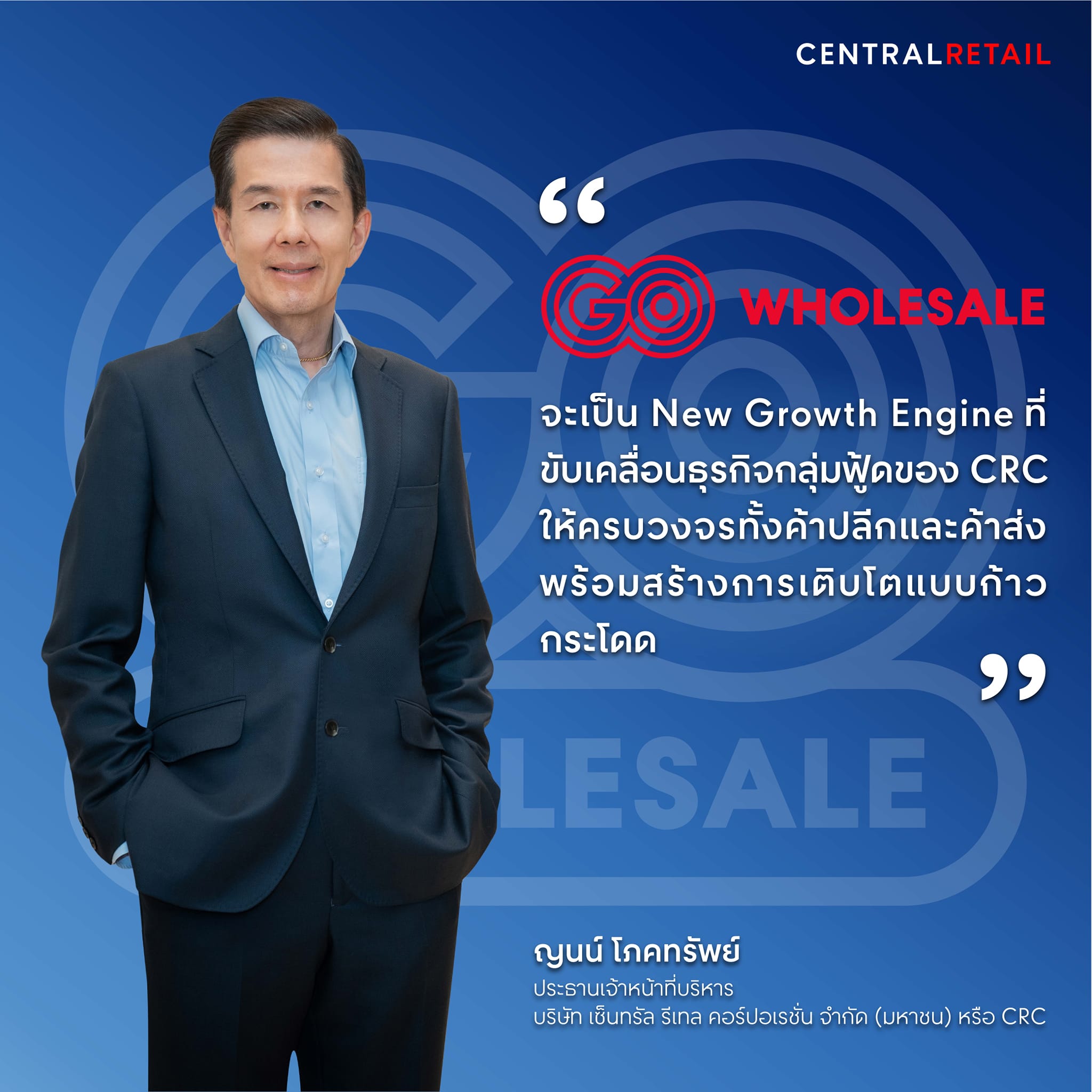 และในวันนี้ เราพร้อมที่จะขยายธุรกิจ B2B ในกลุ่มฟู้ด ด้วยเล็งเห็นศักยภาพของตลาดค้าส่งอาหารในไทย ที่ยังมีโอกาสเติบโตอีกมาก เราจึงเปิดตัวธุรกิจ ‘GO Wholesale’ ขึ้น เพื่อให้เป็น New Growth Engine สำหรับ CRC ที่จะช่วยเติมเต็มกลุ่มฟู้ดให้เป็น Total Solution และตอบโจทย์กลุ่มเป้าหมายทุกกลุ่มได้อย่างครบวงจร โดย GO Wholesale จะเป็นหนี่งใน Key Driver หลักให้กับธุรกิจกลุ่มฟู้ดของ CRC พร้อมทั้งเป็น Platform of Trust ให้กับทุก Stakeholders ด้วยการสร้างประสบการณ์ใหม่ๆ ที่ดีที่สุดให้กับผู้ประกอบการ เป็นองค์กรที่มีความยืดหยุ่นและปรับตัวได้อย่างรวดเร็วในทุกสถานการณ์ ตลอดจนมุ่งมั่นและทำงานร่วมกับทุกพาร์ทเนอร์ เพื่อสร้างผลประโยชน์ร่วมกัน ที่สำคัญ GO Wholesale ยังบริหารงานด้วยทีมงานมืออาชีพ พร้อมทั้งดำเนินธุรกิจอย่างโปร่งใสตามหลักธรรมาภิบาล ซึ่งจะทำให้แพลตฟอร์มนี้สามารถสร้างการเติบโตร่วมกัน (Inclusive Growth) ให้กับทุก Stakeholders ได้อย่างแน่นอน