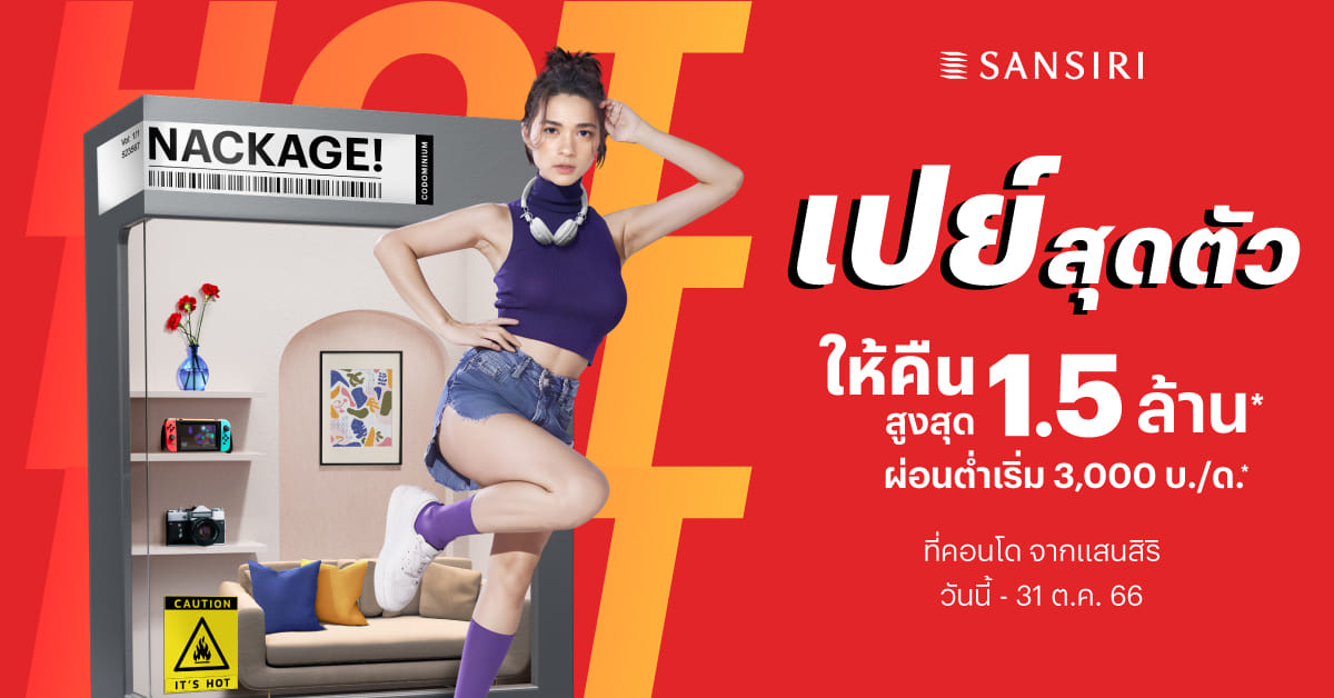 แคมเปญโปรโมชั่น ”Nackage ร้อนทุกแพ็ก แน็กการันตี” ขนทัพที่อยู่อาศัยรวม 79 โครงการจากแสนสิริทั่วประเทศ ทั้งบ้านเดี่ยว-ทาวน์โฮม รวม 59 โครงการ และคอนโดมิเนียม รวม 20 โครงการ ราคาเริ่มต้น 1.09 ล้านบาท ตอบโจทย์คนใจร้อนอยากมีบ้าน ลดสูงสุด 5 ล้าน* คืนสูงสุด 1.5 ล้าน* ดอกต่ำ 0%* ตั้งแต่วันนี้ –31 ต.ค. 2566