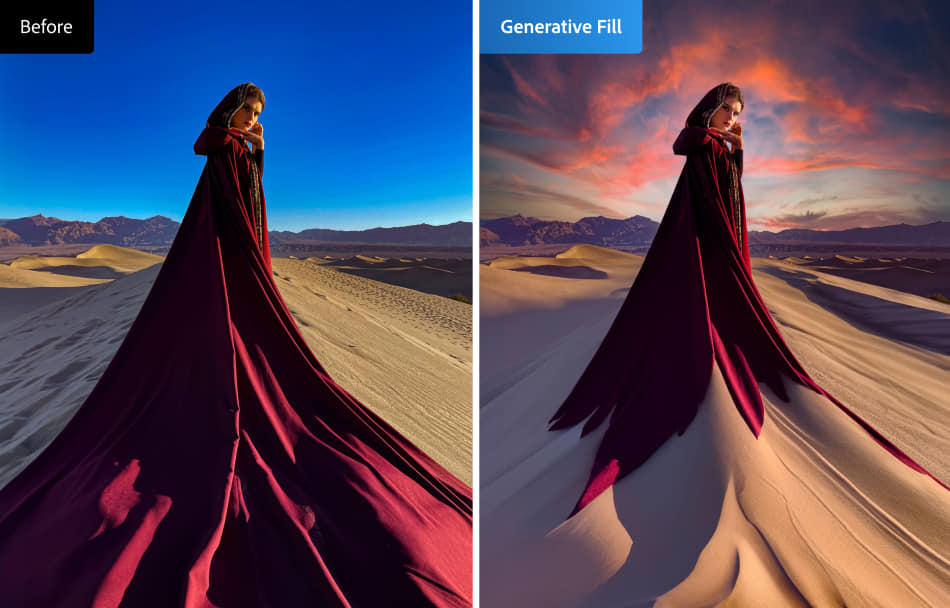 Creative generative AI ใน Photoshop และ Illustrator ซึ่งขับเคลื่อนโดย Firefly พร้อมใช้งานแล้วในแอป Creative Cloud หลายตัว รวมถึง Generative Fill และ Generative Expand ใน Photoshop และ Generative Recolor ใน Illustrator