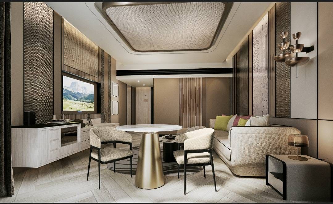 ห้องพรีเมียร์สวีทแบบ 1 ห้องนอน ขนาด 72 ตร.ม. พร้อมห้องนั่งเล่นและโต๊ะทำงานอเนกประสงค์ที่สามารถปรับเปลี่ยนเป็นโต๊ะรับประทานอาหารที่สะดวกสบายสำหรับ 2 คน พร้อมด้วยห้องน้ำหรูหรา ฝักบัวแยกและอ่างอาบน้ำแบบลอยตัว