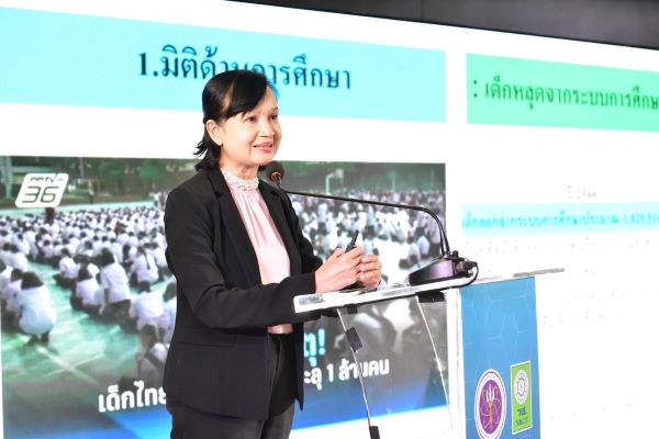 ภายในงานยังมีการบรรยายพิเศษจาก รองศาสตราจารย์ ดร.สุมนทิพย์ จิตสว่าง จากจุฬาลงกรณ์มหาวิทยาลัย ในหัวข้อ “สถานการณ์ปัญหาของเด็กและเยาวชนไทยในปัจจุบันในมิติต่าง ๆ” ซึ่งได้กล่าวถึงสถานการณ์เด็กไทยในปัจจุบัน ที่น่าเป็นห่วงมากขึ้นเรื่อย ๆ ซึ่งปัญหาหลัก ได้แก่ เด็กออกจากโรงเรียนมากขึ้น ปัญหาจากโลกออนไลน์ อบายมุข แม่วัยใส ความรุนแรง สุขภาพจิต และการกระทำผิด โดยเฉพาะปัญหาอบายมุขที่เริ่มต้นในวัยเด็กมากขึ้น เช่น การดื่มสุราในวัย 8 ขวบ การพนันออนไลน์ และบุหรี่ไฟฟ้า นอกจากนี้ ปัญหาแม่วัยใสก็เป็นเรื่องเร่งด่วนที่ต้องแก้ไข เพราะมีเด็กหญิงไทยวัยรุ่นคลอดบุตรมากขึ้นถึง 3 เท่าใน 10 ปีที่ผ่านมา ปัญหาเหล่านี้เกิดจากปัจจัยหลายอย่าง ทั้งสังคม เศรษฐกิจ การศึกษา และสุขภาพ การแก้ไขปัญหาต้องอาศัยความร่วมมือจากทุกภาคส่วน ไม่ว่าจะเป็นภาครัฐ ภาคเอกชน สถาบันการศึกษา ครอบครัว และชุมชน โดยต้องบูรณาการนโยบายและมาตรการต่าง ๆ เพื่อส่งเสริมการศึกษาคุณภาพ สร้างสภาพแวดล้อมที่ปลอดภัย ดูแลสุขภาพกายใจ และเปิดโอกาสให้เด็กและเยาวชนมีส่วนร่วมในการแก้ไขปัญหาของตนเอง ซึ่งแผนงานวิจัยสังคมไทยไร้ความรุนแรง ที่ วช. ให้การสนับสนุนเป้นตัวอย่างของงานวิจัยที่ใช้แก้ปัญหาของเด็กและเยาวชน เป็นแนวทางที่สามารถนำไปปรับใช้ได้ในวงกว้าง เช่น การนำหลักธรรมทางพุทธศาสนามาใช้ในการป้องกันการกระทำผิด หรือการสร้างโรงเรียนต้นแบบเพื่อป้องกันการกลั่นแกล้ง ซึ่งองค์ประกอบที่สำคัญที่สุดในแนวทางนี้คือการตระหนักถึงบทบาทของเด็กและเยาวชน ในฐานะที่เป็นทรัพยากรมนุษย์ที่มีคุณค่าสูงสุดของประเทศ การพัฒนาเด็กและเยาวชนในมิติต่าง ๆ ไม่ว่าจะเป็นในด้านปัญญา สังคม หรืออารมณ์ นับเป็นการลงทุนระยะยาวที่คุ้มค่า จะส่งผลให้เยาวชนเหล่านี้สามารถเติบโตขึ้นเป็นผู้ใหญ่ที่มีจิตสำนึกทางสังคมที่เข้มแข็ง และมีความสามารถในการพัฒนาประเทศอย่างยั่งยืน