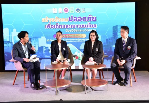 นอกจากนี้ ยังมีการเสวนา เรื่อง “สร้างสังคมปลอดภัย เพื่อเด็กและเยาวชนไทยด้วยวิจัยและนวัตกรรม” ซึ่งมีประเด็นดังนี้