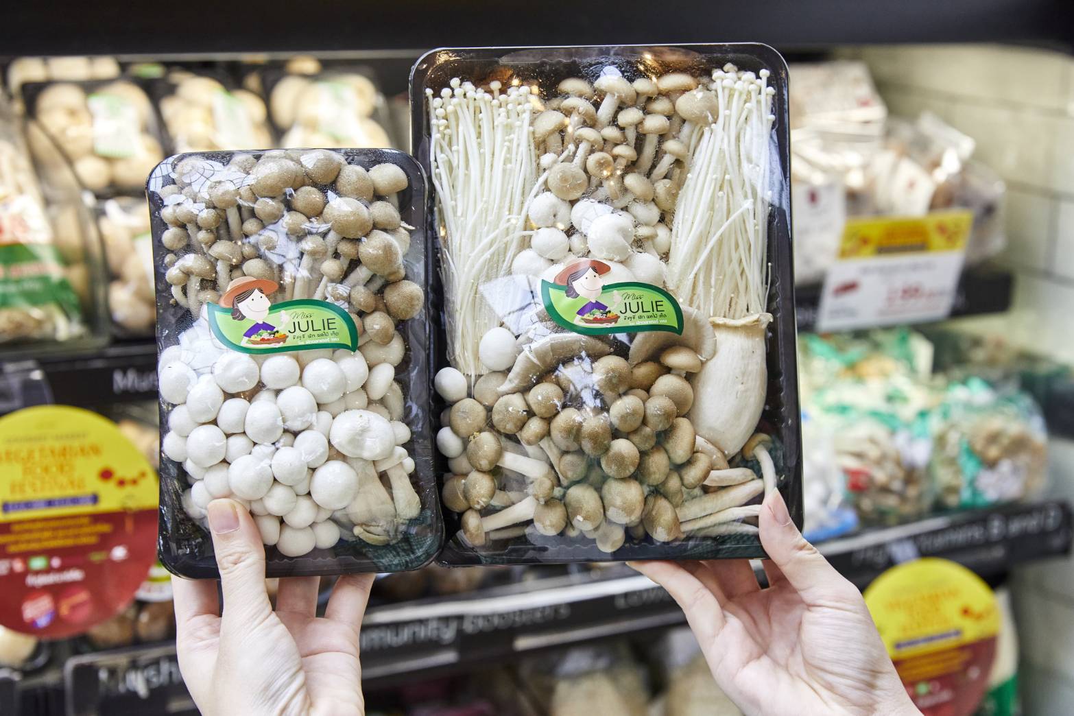 กูร์เมต์ มาร์เก็ต ทุกสาขา: พบกับ “BEST OF J INGREDIENT” รวบรวมที่สุดของวัตถุดิบเจคุณภาพดี สด สะอาด ส่งตรงจากแหล่งผลิต และ ตลาดดังทั่วไทย มากกว่า 2,000 รายการ มาให้เลือกช้อปไปทำเมนูเจจานโปรดที่บ้าน อาทิ แปะก๊วย จากตลาดเยาวราช, เต้าหู้ขาวแข็ง ตลาดสะพานใหม่, ไชเท้าขาวปลอดสารฟอกขาว ตลาดบางคล้า จ.ฉะเชิงเทรา, เต้าหู้ซีอิ๊วดำ ตลาดโพธาราม จ.ราชบุรี, กานาฉ่าย ของเด็ดตลาดบ้านหินกอง จ.สระบุรี, แม่กิมฮวย ไชโป้ว ตลาด 100 ปี วัดเจ็ดเสมียน จ.ราชบุรี, ผักและผลไม้สด ส่งตรงจากสวนทั้งในไทยและต่างประเทศ อาทิ เห็ดหอม, เห็ดฟาง, เห็ดเข็มทอง, เห็ดออรินจิ, เห็ดแชมปิญอง, เห็ดพอตโตเบลโล่, เห็ดโคนญี่ปุ่น, เห็ดชิเมจิ, ลูกพลับ, สาลี่หิมะ, แอปเปิ้ลฟูจิ, ส้มแมนดาริน พร้อมด้วยเมนูเจพร้อมทานจากร้านดัง อาทิ กานาไฉ่แม่ดวงแก้ว, เจทิพย์ ลูกชิ้นเห็ดหอมเจ, โปรตีนถั่วเหลืองเจวี, ขนมปังแซนด์วิชโฮลวีต สูตรวีแกน, กูร์เมต์ ซุปครีมข้าวโพดแปะก๊วยเจ, กูร์เมต์ สลัดอโวคาโดเจ, แซลมอนอุระมากิเจ จากธรรมชาติซีฟู้ด, มีทลี่ ข้าวแกงเขียวหวานเนื้อจากพืช, ฮูเร่นมถั่วเหลืองโปรตีนสูงรสช็อกโกแลต, โทฟุซังนมถั่วเหลืองโปรตีนสูง 0% รสสตรอว์เบอร์รี่ และสินค้าอื่นอีกมากมาย พร้อมบริการจัดส่งถึงบ้านเมื่อสั่งผ่านบริการ Call To Order หรือ ช้อปออนไลน์ ที่ www.GourmetMarketThailand.com