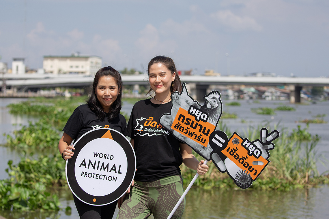 จากผลกระทบดังกล่าวทำให้องค์กรพิทักษ์สัตว์แห่งโลก ประเทศไทยได้ร่วมกับภาครัฐและเอกชนรณรงค์ต้านเชื้อดื้อยาจากฟาร์มอุตสาหกรรม โดยการจัดแคมเปญ “บึ๊ด จ้ำ บึ๊ด ฮึดสู้เพื่อสัตว์ฟาร์ม” นำโดย มารีญา พูลเลิศลาภ และ ผศ.ดร.ปริญญา เทวานฤมิตร ผนึกพลังทีม “พายซัพ” ล่องแม่น้ำสามสาย ดีเดย์ แม่น้ำสายแรก “บางปะกง”