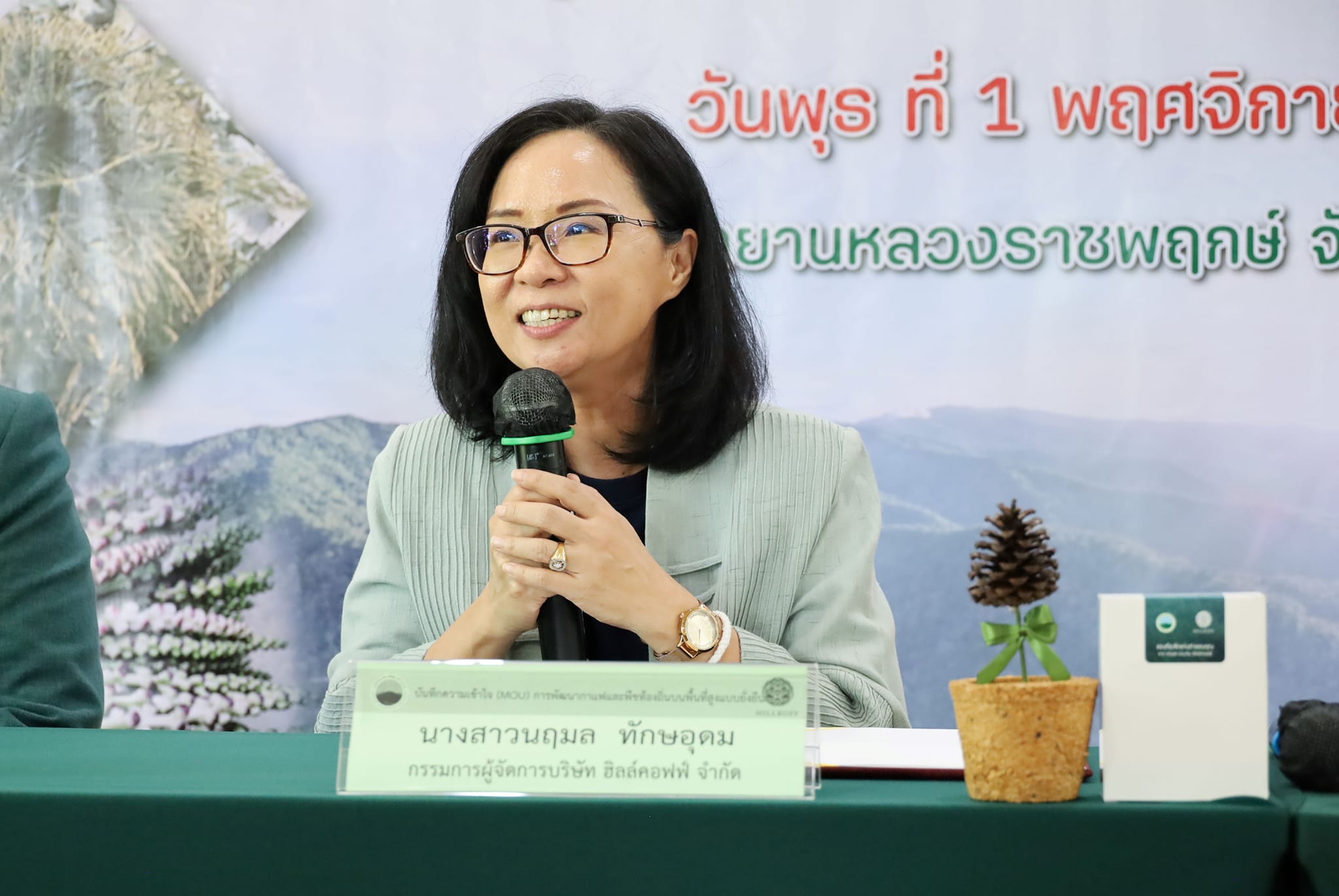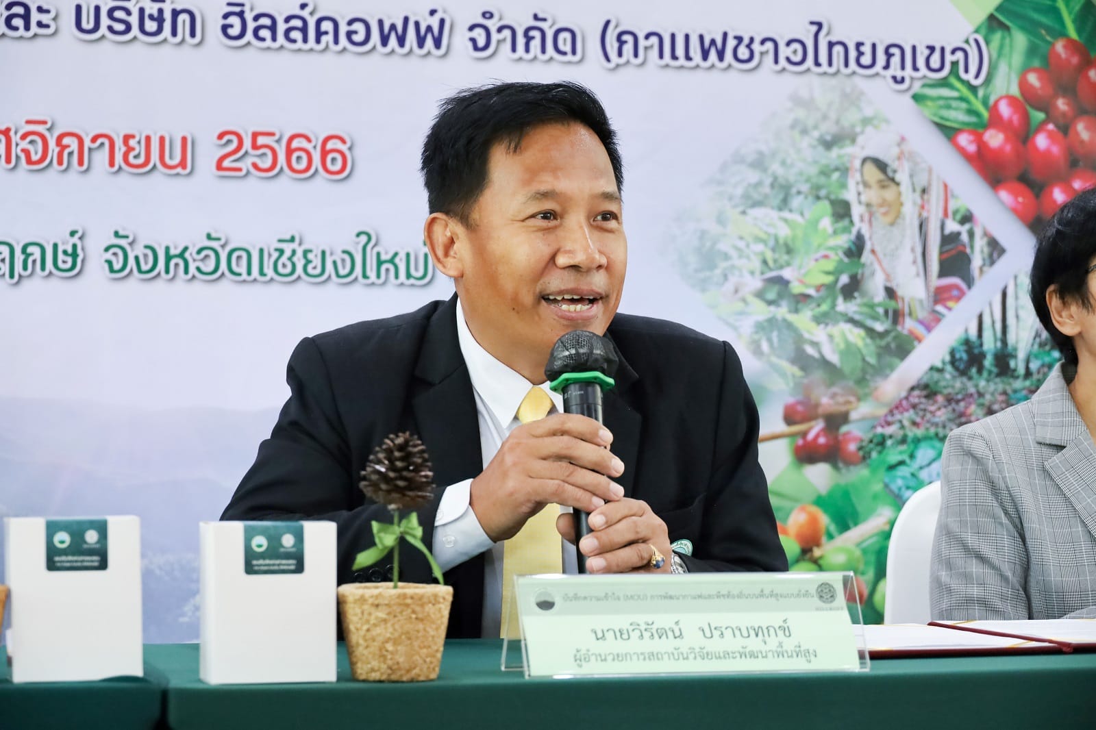สถาบันวิจัยและพัฒนาพื้นที่สูง (องค์การมหาชน) หรือ สวพส. นำโดย นายวิรัตน์ ปราบทุกข์ ผู้อำนวยการสถาบันวิจัยและพัฒนาพื้นที่สูง และ นางสาวนฤมล ทักษอุดม กรรมการผู้จัดการ บริษัท ฮิลล์คอฟฟ์ จำกัด (กาแฟชาวไทยภูเขา) ได้ลงนามบันทึกความเข้าใจ (Memorandum Of Understanding : MOU) เพื่อการพัฒนากาแฟและพืชท้องถิ่นบนพื้นที่สูงแบบยั่งยืน โดยมีวัตถุประสงค์เพื่อร่วมมือในการยกระดับการผลิต การตลาด การเพิ่มมูลค่า และกตคนารสร้างคุณค่าของกาแฟและพืชท้องถิ่น ด้วยองค์ความรู้และนวัตกรรมทางการเกษตรภายใต้ระบบการผลิตที่เป็นมิตรกับสิ่งแวดล้อม มุ่งสู่ความเป็นกลางทางคาร์บอน (Carbon neutral) และการดูแลทรัพยากรบนพื้นที่สูงอย่างยั่งยืน ตลอดจนการส่งเสริมการรับรองพืชจากแหล่งปลูก ผลิตภัณฑ์ชุมชน และผู้ประกอบการ และภายใต้ความเป็นมิตรต่อสิ่งแวดล้อม (Forest stamp – ไม่เผา ไม่บุกรุกป่า สร้างระบบวนเกษตร ผลิตภัณฑ์ของคนดี)