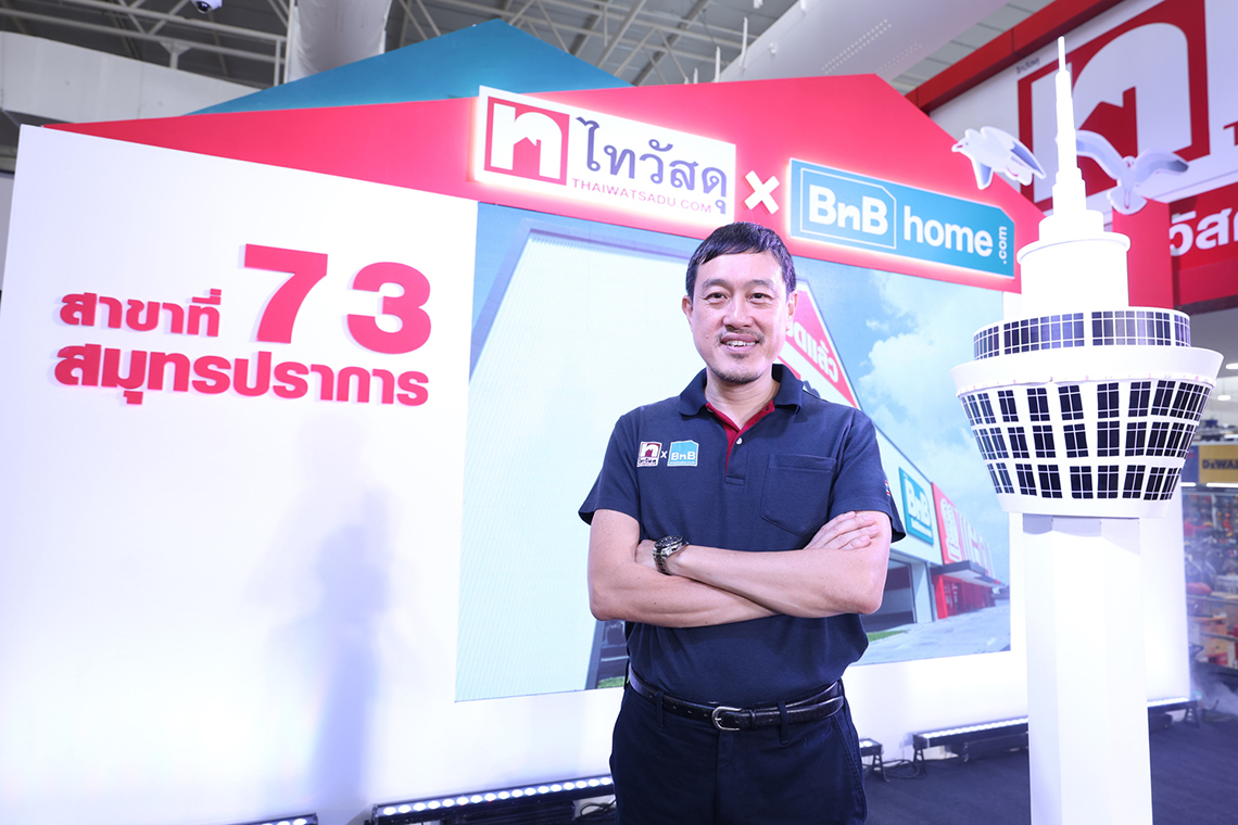 “ไทวัสดุ ยังคงเดินหน้าขยายความครอบคลุมของธุรกิจผ่านโมเดลธุรกิจที่หลากหลาย เพื่อให้สามารถเข้าถึงและตอบโจทย์คนในพื้นที่ต่าง ๆ ได้อย่างเหมาะสมไม่ว่าเล็กหรือใหญ่ ก็ยังคงจุดเด่นเรื่องความครบครันเอาไว้ ไม่ว่าจะเป็นในรูปแบบของ Blue Format โมเดลไทวัสดุที่ใช้พื้นที่ขนาดเล็กประมาณ 10,000 ตร.ม เจาะกลุ่มผู้รับเหมา-ช่างรายย่อย Red Format ไทวัสดุรูปแบบมาตรฐาน และแบบ White Format ที่ผนึกความแข็งแกร่งระหว่างไทวัสดุ และบีเอ็นบี โฮม นอกจากนี้ยังได้เสริมความครบครันในพื้นที่ด้วยการผนวกกลุ่มธุรกิจต่าง ๆ อาทิ ‘ออโต้วัน’ ธุรกิจกลุ่มฟาสต์ฟิตหรือศูนย์บริการรถยนต์ครบวงจร และล่าสุดกับ ‘โก โฮลเซลล์’ กลุ่มธุรกิจฟู้ด โฮลเซลล์ ที่เรียกได้ว่าจะทำให้เหล่านักช้อปได้สัมผัสประสบการณ์ใหม่ ๆ อย่างที่ไม่เคยมีมาก่อน โดยเราเชื่อมั่นเป็นอย่างยิ่งว่าไทวัสดุ x บีอ็นบี โฮม สาขาสมุทรปราการจะช่วยสร้างเศรษฐกิจภายในจังหวัดให้แข็งแกร่งมากยิ่งขึ้น ผ่านการสร้างโอกาสให้ชุมชน พันธมิตรและผู้ประกอบการทั้งรายใหญ่และรายย่อยให้ได้เติบโตไปพร้อม ๆ กัน”
