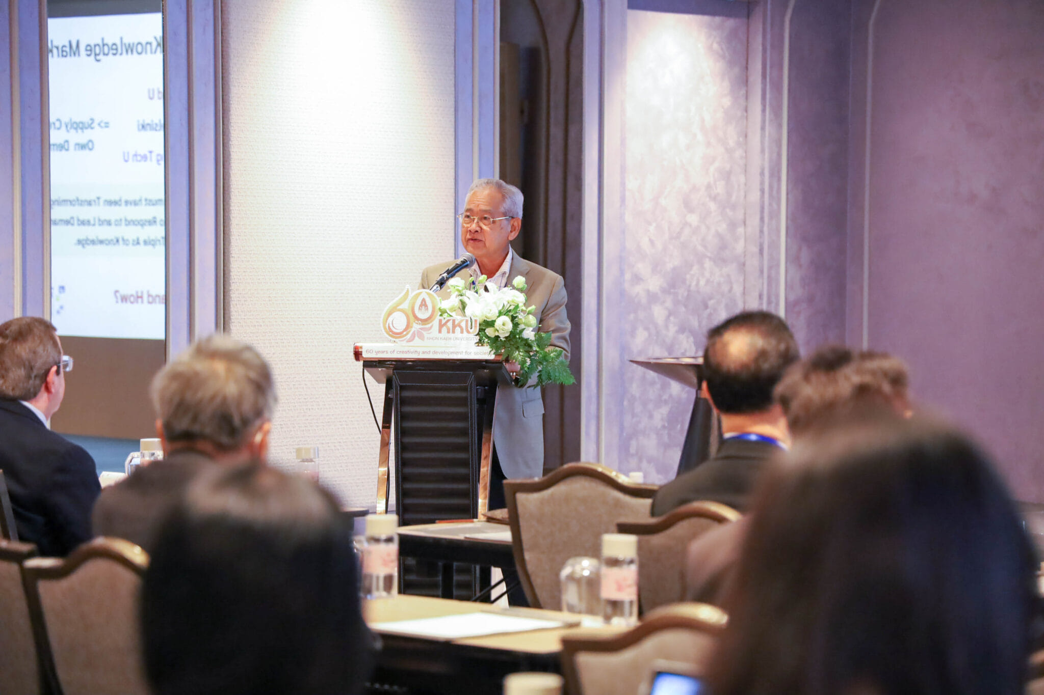 ในการนี้ ดร.ณรงค์ชัย อัครเศรณี นายกสภามหาวิทยาลัยขอนแก่น ได้ให้เกียรติบรรยายผ่านมุมมองของเศรษฐศาสตร์ว่า หากมองด้วยวิธีคิดทางเศรษฐศาสตร์ ตลาดสำหรับมหาวิทยาลัยจะมี 2 ส่วนที่สำคัญ คือ การมอบใบปริญญาให้แก่ผู้เรียนและการผลิตสร้างองค์ความรู้จากงานวิจัย ซึ่งทั้ง 2 ส่วนนี้มีวัตถุประสงค์ที่สำคัญ 3 ประการ คือ เพื่อสร้างความมั่นใจ แสดงถึงการยอมรับ และการนำไปใช้งานได้จริง อย่างไรก็ตาม หากมองผ่านกลไกอุปสงค์และอุปทาน แต่ละมหาวิทยาลัยจะมีลักษณะความเป็นสินค้าที่แตกต่างกัน เช่น University of Helsinki, Harvard University, Nanyang Technological University ดังนั้น บทบาทของมหาวิทยาลัยจึงจำเป็นจะต้องพัฒนาให้พร้อมกับการเปลี่ยนแปลงของบริบททางสังคม ความต้องการของผู้เรียน และฉากทัศน์ของอนาคต เช่นเดียวกันกับมหาวิทยาลัยขอนแก่นที่จะร่วมเรียนรู้กันในงานสัมมนาวันนี้