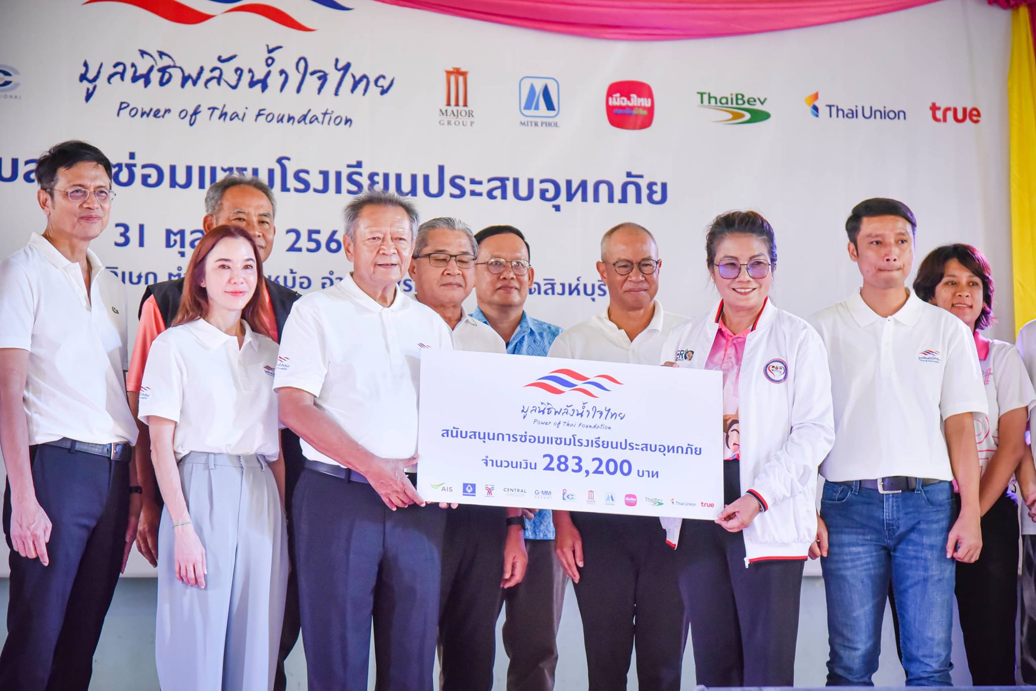 มูลนิธิพลังน้ำใจไทย (Power of Thai Foundation) สานต่อความช่วยเหลือด้านสถาบันการศึกษา หลังเกิดอุทกภัยครั้งใหญ่ ผนึกกำลังภาคีภาคเอกชน 12 บริษัท นำโดย คุณอดิศักดิ์ เทพอาสน์ ประธานที่ปรึกษา พร้อมด้วย คุณประวิช สุขุม กรรมการและเลขานุการ พร้อมด้วย เครือข่ายโครงการ eisa (Education Institute Support Activity) และภาคีเครือข่าย ลงพื้นที่โรงเรียนพรหมบุรีรัชดาภิเษก จ.สิงห์บุรี เพื่อมอบเงินสนับสนุนซ่อมแซมห้องน้ำ เป็นจำนวนเงิน 283,200 บาท พร้อมส่งมอบอาคารสาธารณูปโภค ที่ได้รับการซ่อมแซมจากอุทกภัยน้ำท่วมในปีที่ผ่านมา