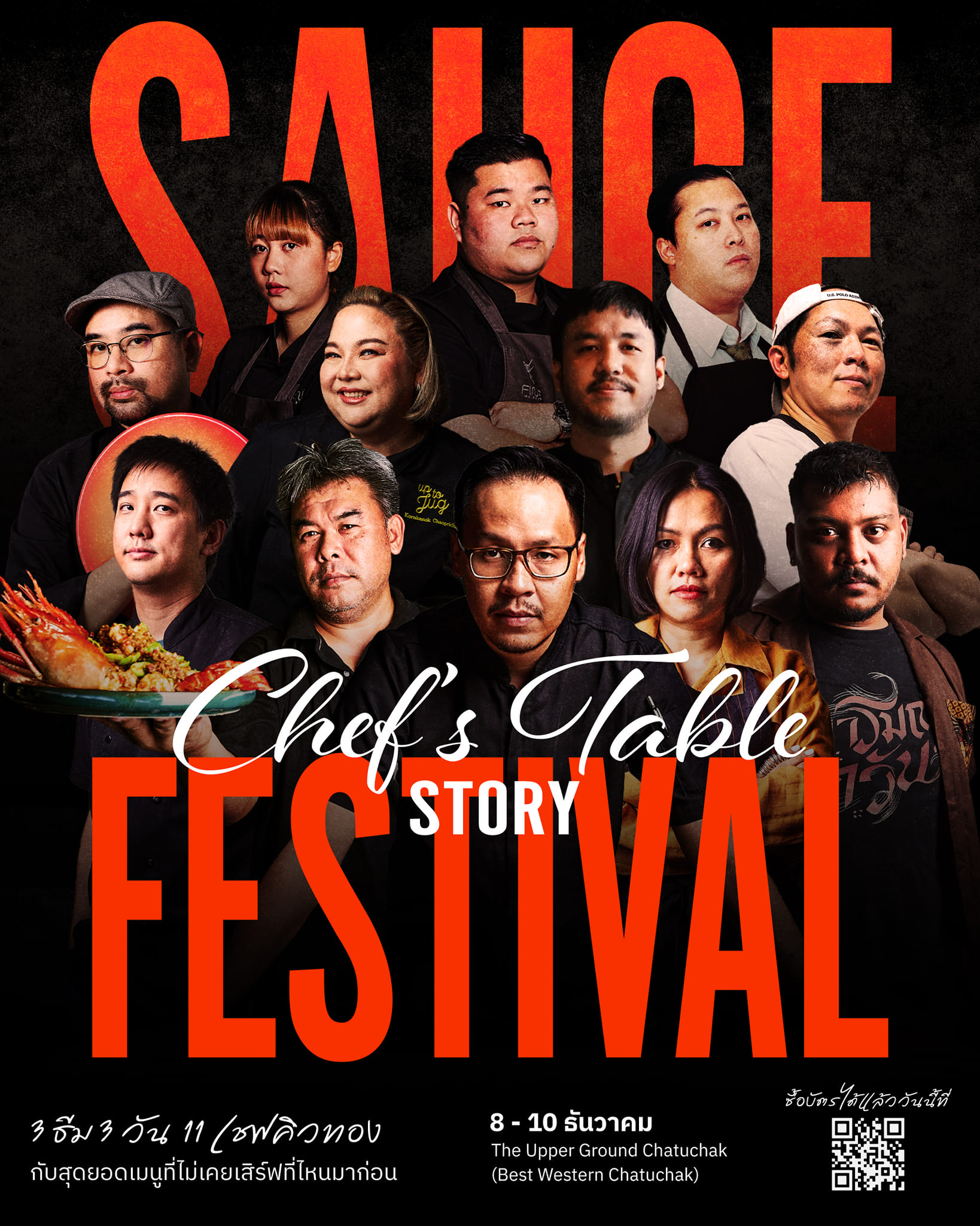 ร่วมสัมผัสความอร่อยกับเมนูอาหารสุดเอ็กซ์คลูซีฟงาน "Sauce Festival : Chef’s Table Story เทศกาล Chef’s Table เรื่องเชฟกินได้" ในวันที่ 8-10 ธันวาคมนี้ ณ โรงแรม The Upper Ground Chatuchak รอบกลางวัน 11:30 น. จำนวน 7 คอร์ส ในราคาพิเศษ 2,850 บาท จากราคาปกติ 3,750 บาท และรอบดินเนอร์ 19:00 น. จำนวน 8 คอร์ส ในราคาพิเศษ 3,850 บาท จากราคาปกติ 4,750 บาท ติดตามอัพเดทไลน์อัพได้ที่ https://web.facebook.com/SauceChannel