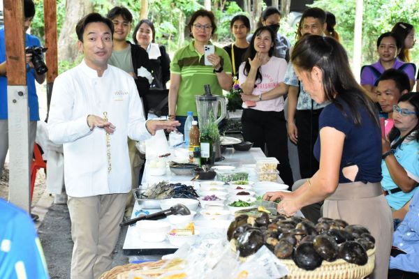 ขณะที่ เชฟธอมัส ดร.วรพล อิทธิคเณศร ผู้อยู่เบื้องหลังเพจตำรับข้างวังที่มีผู้ติดตามเกือบ 5 แสนคน ที่ร่วมรังสรรค์เมนูต่อยอดวัตถุดิบเห็ดป่ากินได้ กล่าวว่า ปัจจุบันมีการส่งเสริมใช้วัตถุดิบพื้นบ้านที่สามารถเพาะปลูกได้ในไทย ในเชิงเศรษฐกิจถือว่าได้ช่วยชาวบ้าน เมนูที่รังสรรค์ครั้งนี้คือ ต้มยำ ซึ่งเราคุ้นเคยกันดีว่า ต้มยำต้องใส่เห็ดลงไป ธรรมดาเราใส่เห็ดนางฟ้า เห็ดฟาง แต่วันนี้เราใส่เห็ดระโงก กลิ่นสัมผัสที่ได้จะคล้าย ๆ เห็ดโคนผสมกับเห็ดฟาง ได้ความหนึบความหอม ส่วนอีกเมนูหนึ่งคือ ซุปเห็ดภูเขาไฟ ด้วยการใช้เห็ดเผาะแทนเห็ดทรัฟเฟิลในการทำซุป ด้วยรสชาติและรสสัมผัสมีความใกล้เคียง แต่อาจมีเรื่องกลิ่นเล็กน้อยที่ต้องมีการปรับ ซึ่งเมนูนี้สามารถเผยแพร่และส่งออกในระดับนานาชาติได้ โดยที่เลือกซุปเพราะซุปเป็นพื้นฐานของการทานอาหารในหลาย ๆ ชาติ ซุปเห็ดเผาะเป็นอาหารเรียกน้ำย่อยได้ กลิ่นธรรมชาติจะช่วยบำบัดทำให้เกิดความสุขในการรับประทานอาหาร ถ้าเรามีการพัฒนาและปรับปรุงต่อยอด เชื่อว่าชาวต่างชาติจะนำเห็ดเผาะนี้ไปใช้เป็นวัตถุดิบในการทำอาหารกันมากขึ้น เพราะวัตถุประสงค์ของการทำอาหารจริง ๆ คือ ทำให้คนมีความสุข ทำให้คนอร่อย จนเป็นรสชาติที่ประทับใจ จะทำให้เกิดการส่งออกที่มากขึ้นกับเห็ดที่ปลูกในประเทศไทย