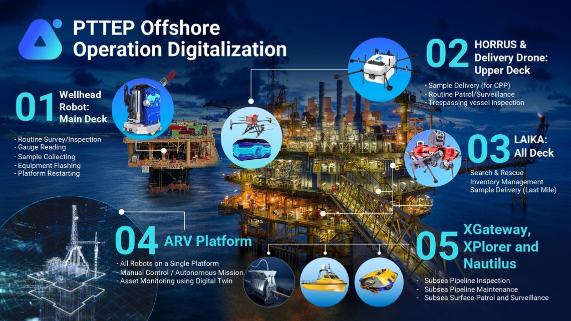 แม้ ARV จะเติบโตในธุรกิจปิโตรเลียม แต่ตั้งใจพัฒนาเทคโนโลยีไปใช้แก้ปัญหาให้ได้ทุกอุตสาหกรรม ในมุมต่างๆ เช่นกัน ซึ่ง ARV ยังได้พัฒนาหุ่นยนต์และโซลูชันต่างๆ เพื่อใช้ในเรื่อง PTTEP Offshore Operation Digitalization การปรับรูปแบบการทำงานของธุรกิจแม่อย่าง ปตท.สผ. โดย ARV ทำหุ่นยนต์เข้าไปช่วยลดความเสี่ยงในการใช้คนทำงานในพื้นที่นอกชายฝั่งที่มีความอันตราย และค่าใช้จ่ายสูง ไม่ว่าจะเป็น หุ่นยนต์ Wellhead ทำหน้าที่สำรวจบนแท่นขุดเจาะก๊าซธรรมชาติ โดรนฮอรัสและโลจิสติกส์โดรน หุ่นยนต์สี่ขา Laika ทำหน้าที่บนแท่นปฏิบัติการนอกชายฝั่ง แพลตฟอร์ม ARV พัฒนาเพื่อเชื่อมต่อหุ่นยนต์และการทำงานของคนและหุ่นยนต์ใต้ทะเล เช่น Xplorer (เอ็กซ์พลอเรอร์) หุ่นยนต์สำรวจท่อส่งปิโตรเลียมใต้ท้องทะเลลึก Nautilus (นอติลุส) หุ่นยนต์ซ่อมท่อใต้ทะเลตัวแรกของโลก เป็นต้น