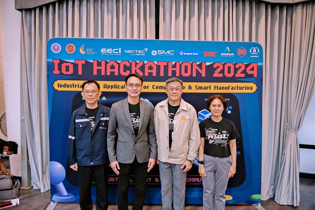 สำนักงานคณะกรรมการนโยบายเขตพัฒนาพิเศษภาคตะวันออก (สกพอ.) ร่วมกับ สำนักงานคณะกรรมการการอาชีวศึกษา (สอศ.) เขตนวัตกรรมระเบียงเศรษฐกิจพิเศษภาคตะวันออก (EECi) และศูนย์เทคโนโลยีอิเล็กทรอนิกส์และคอมพิวเตอร์แห่งชาติ หรือ เนคเทค สวทช. จัดการแข่งขัน IoT Hackathon 2024 ครั้งที่ 4 ภายใต้โจทย์ Industrial AIoT Applications for Competitive & Smart Manufacturing ภายใต้ “โครงการ ขยายผลหลักสูตร Internet of Things, Industrial IoT และการประมวลผลเครื่องจักรด้วย AI สําหรับสถาบันอาชีวศึกษา” ในวันที่ 11 – 13 มีนาคม 2567 ณ เขตนวัตกรรมระเบียงเศรษฐกิจพิเศษภาคตะวันออก (EECi) วังจันทร์วัลเลย์ จ.ระยอง ระยะเวลา 36 ชั่วโมง นำความรู้ที่ได้รับจากการอบรมมาประยุกต์ใช้ในการแข่งขัน เตรียมความพร้อมสู่การฝึกปฏิบัติงานในสถานประกอบการ และเสริมทักษะ Soft Skill ในการทำงานร่วมกับผู้อื่น