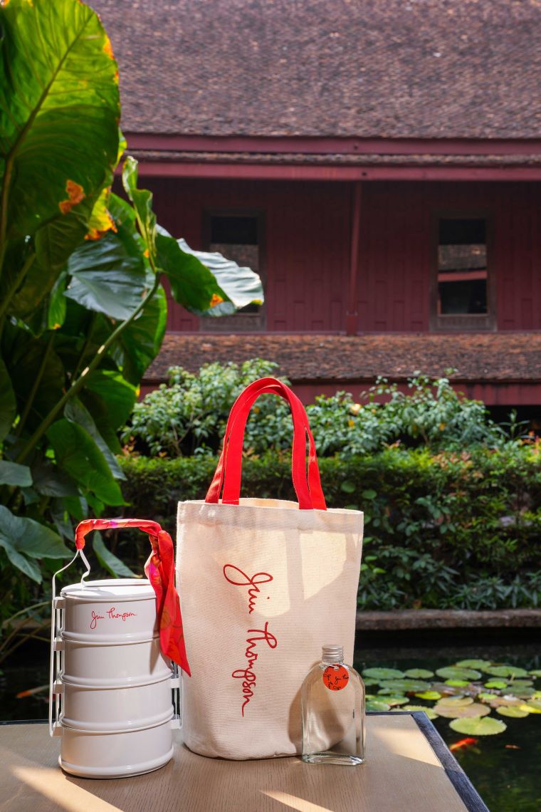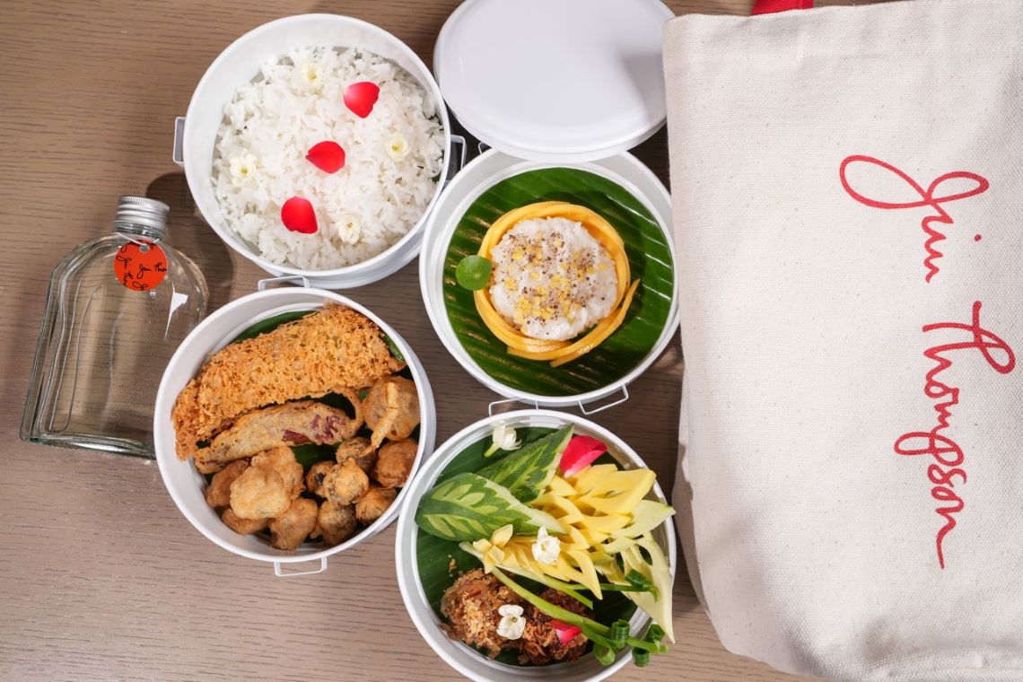 “ข้าวแช่ จิม ทอมป์สัน” ในเซตกลับบ้านที่จิม ทอมป์สันเปิดตัวครั้งแรกในปีนี้ มาพร้อมปิ่นโตพรีเมียมลวดลายจิม ทอมป์สันแบบเอ็กซ์คลูซีฟ ด้ามจับตกแต่งด้วยผ้าไหมจาก จิม ทอมป์สัน พร้อมด้วยถุงผ้าสวยงาม ผู้รับสามารถสแกนคิวอาร์โค้ดเพื่อดูรายละเอียดเกี่ยวกับเมนู วัตถุดิบ และวิธีรับประทาน เหมาะสำหรับเป็นของฝากสุดพิเศษเฉพาะหน้าร้อนและของขวัญช่วงเทศกาลสงกรานต์ที่ทั้งอร่อยและมีดีไซน์สวยงามโดดเด่นไม่ซ้ำใคร