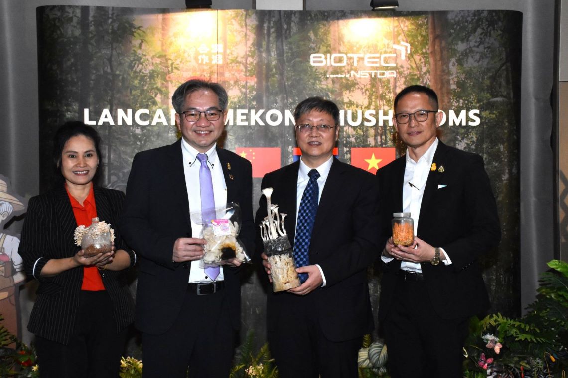 สำนักงานพัฒนาวิทยาศาสตร์และเทคโนโลยีแห่งชาติ (สวทช.) แถลงข่าวเปิดโครงการที่ได้รับทุนจากกองทุนพิเศษความร่วมมือล้านช้าง-แม่โขง (LMCSF Funded Project) โดยรัฐบาลสาธารณรัฐประชาชนจีน เพื่อประชาสัมพันธ์แก่ผู้มีส่วนได้ส่วนเสีย และขยายเครือข่ายต่อยอดการสร้างผลกระทบของโครงการ จำนวน 3 โครงการของ สวทช. ประกอบด้วยเรื่องการถ่ายทอดเทคโนโลยีและเพิ่มมูลค่าเห็ดบริโภค การผลิตมันสำปะหลังที่ยั่งยืน และมาตรฐานผลิตภัณฑ์ในโครงการรถไฟความเร็วสูง โดยมี ศ.ดร.ชูกิจ ลิมปิจำนงค์ ผู้อำนวยการ สวทช. และนายหม่า มิงเกิง ที่ปรึกษาด้านวิทยาศาสตร์และเทคโนโลยี สถานเอกอัครราชทูตสาธารณรัฐประชาชนจีนประจำประเทศไทย ร่วมเปิดงาน พร้อมด้วยนักวิจัยในโครงการ และผู้เกี่ยวข้องทุกภาคส่วนเข้าร่วมงาน