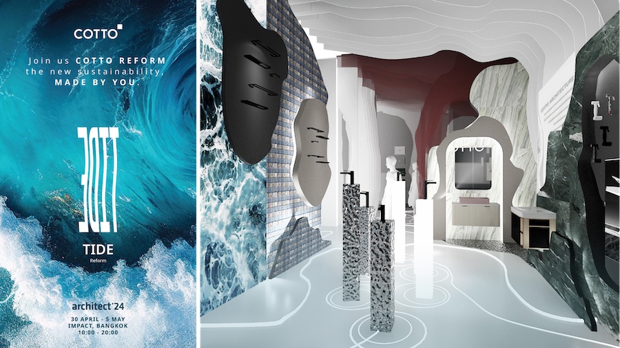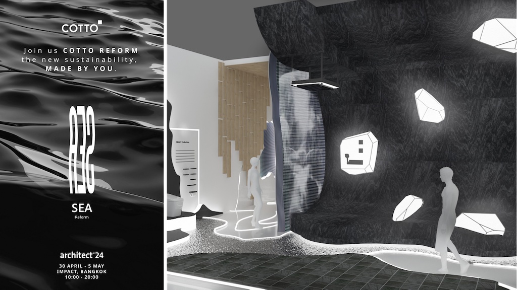 COTTO ภายใต้ SCG Decor ผุดไอเดียล้ำ ยกนวัตกรรมวัสดุตกแต่ง จัด Art Installation ในคอนเซปต์ COTTO ‘reform the new sustainability, made by you.’ มาไว้ในงาน “สถาปนิก’67” ซึ่งปีนี้มาในธีม ‘Collective Language: สัมผัสสถาปัตย์’ ที่เป็นการนำเสนอถึงการสื่อสารด้วยภาษาที่ไร้ขอบเขต เพื่อเป็นอีกหนึ่ง Journey ในการสื่อสารสุดท้าทาย ผ่านการนำสินค้า กระเบื้องสุขภัณฑ์ ก๊อกน้ำ อีกทั้งอุปกรณ์ภายในห้องน้ำ ผสานด้วยนวัตกรรมวัสดุที่ถูกคิดมาเพื่อลดปัญหาวิกฤติสิ่งแวดล้อม มาจำลองสถานการณ์ที่ Booth Experience อาทิ การหยิบยก Iceberg Crack สัญลักษณ์การเปลี่ยนแปลงตลอดเวลาของภาวะโลกร้อน เพื่อสะท้อนถึง Climate Change หรือ การเปลี่ยนแปลงของสภาพภูมิอากาศ ที่กระทบกับคนทั่วโลกในระดับมหภาค พร้อมด้วยอีก 4 โซน Reform ได้แก่ Sea Reform, Land Reform, Temperature Reform และ Tides Reform ให้เหล่านักออกแบบ ที่เปรียบเสมือนผู้นำในการสรรค์สร้างที่อยู่อาศัย ได้มาร่วมสัมผัสในงานฯ และเล็งเห็นถึงความสำคัญในการเลือกวัสดุและผลิตภัณฑ์ ซึ่งเป็นจุดเริ่มต้นในการลดการใช้ทรัพยากรที่ทำลายสิ่งแวดล้อมได้มากขึ้น พร้อมร่วมกัน REFORM เพื่อเปลี่ยนโลกให้ดีไปกว่าเดิมได้