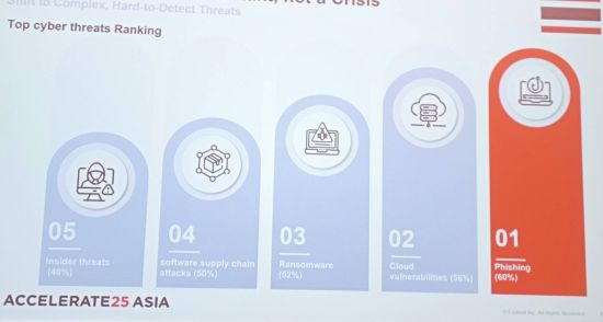 ซึ่งภัยคุกคามที่พบบ่อย ได้แก่ ฟิชชิง (60%), ช่องโหว่คลาวด์ (56%), แรนซัมแวร์ (52%), ซัพพลายเชน (50%) และภัยจากภายใน (48%)   และภัยที่น่ากังวลที่สุด คือ ช่องโหว่ซีโร่เดย์, ช่องโหว่ที่ยังไม่ได้แก้ไข, การตั้งค่าคลาวด์ผิดพลาด และความผิดพลาดของผู้ใช้ ซึ่งมักหลุดรอดการตรวจจับ     ภัยคุกคามใหม่เติบโตเร็ว โดยเฉพาะช่องโหว่ unpatched/zero-day (20%), การโจมตี IoT/OT (16%) และซัพพลายเชน (12%)   ส่งผลกระทบสำคัญต่อธุรกิจ ได้แก่ การโดนขโมยข้อมูล (64%), สูญเสียความเชื่อมั่น (62%), ถูกลงโทษตามกฎหมาย (46%) และระบบล่ม (40%)   ความเสียหายทางการเงินสูง โดย 56% ขององค์กรเคยประสบเหตุข้อมูลรั่ว และ 25% มีมูลค่าความเสียหายเกิน 500,000 ดอลลาร์สหรัฐ    ภัยไซเบอร์ไม่ใช่เรื่องชั่วคราว แต่เป็นความเสี่ยงต่อเนื่องที่องค์กรต้องบริหารจัดการอย่างจริงจัง.