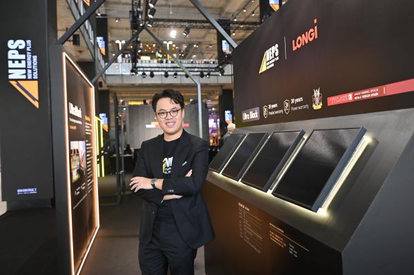 ด้านความร่วมมือกับ NEPS นั้น คุณหม่า เหมิง (Ma Meng) กล่าวต่อว่า “เรามองเห็นจุดแข็งของ NEPS ในหลายด้านไม่ว่าจะเป็นเรื่อง วิสัยทัศน์ในการมุ่งมั่นนำพลังงานสะอาดมาช่วยขับเคลื่อนเพื่อเปลี่ยนแปลงโลกสู่อนาคตที่ยั่งยืน โดยยึดหลักความรับผิดชอบต่อลูกค้า ต่อสังคม และสิ่งแวดล้อม รวมถึงวิธีการทำการตลาดของ NEPS ที่เน้นเรื่องการให้ข้อมูลความรู้เป็นสำคัญ อีกทั้งการให้บริการลูกค้าแบบ One Stop Solution ทำให้สามารถเจาะกลุ่มลูกค้าที่หลากหลายและครอบคลุม เราจึงมั่นใจในการเลือกนำสินค้าที่มีนวัตกรรมสูงของ LONGi มาให้ทาง NEPS เป็นผู้เปิดตลาดเจ้าแรกและเจ้าเดียวในไทย ได้แก่ “HI-MO X6 Ultra Black” อีกทั้งสินค้าตัวนี้ ยังคว้ารางวัลระดับนานาชาติได้ถึง 2 รางวัล ได้แก่ รางวัล A’ Design Award & Competition และ French Design Awards นอกจากนี้ LONGi เรายังเป็นบริษัทที่คิดค้นและผลิต BIPV หรือ เซลล์แสงอาทิตย์แบบผสานวัสดุอาคารรายต้นของโลก ซึ่งนับเป็นการเพิ่มศักยภาพทางการแข่งขันด้านโซลาร์ ด้วยเทคโนโลยีที่ผสานเข้ากับวัสดุอาคาร เพื่อมุ่งสู่การสร้างอาคารเขียว (Green Building) ที่ไม่เพียงผลิตพลังงานไฟฟ้า แต่ยังสามารถป้องกันความร้อน ลดการปล่อยก๊าซเรือนกระจก เรียกว่าเป็นการยกระดับธุรกิจพลังงานในไทยไปอีกขั้น ซึ่งเราเชื่อมั่นว่าการผนึกกำลังกับ NEPS ในครั้งนี้ จะยิ่งเป็นการต่อยอดธุรกิจโซลาร์ของไทยให้มีประสิทธิภาพมากขึ้นและเติบโตอย่างแข็งแกร่ง”