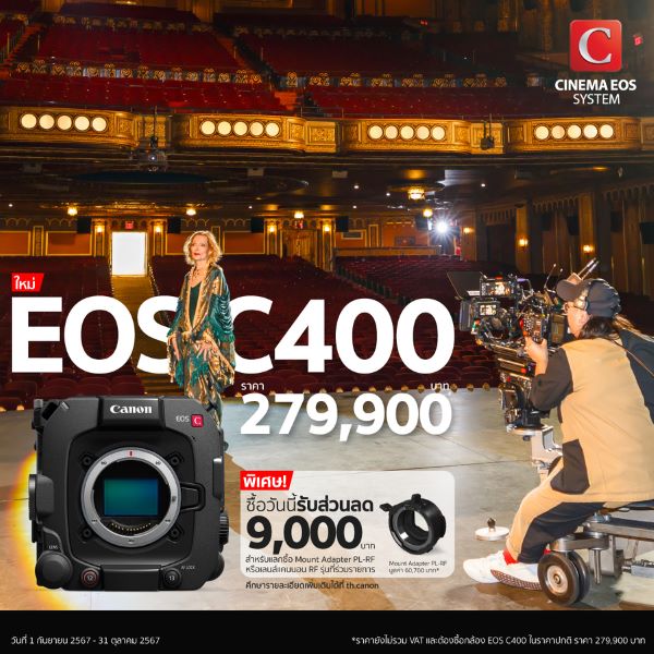 แคนนอน (CANON) แบรนด์ผู้นำด้านเทคโนโลยีการถ่ายภาพ ประกาศเปิดตัว “EOS C400” กล้องถ่ายภาพยนตร์ระบบดิจิทัลรุ่นใหม่ในซีรีส์ CINEMA EOS มอบศักยภาพใหม่ในการทำงานด้วยคุณสมบัติตัวเครื่องกะทัดรัด คล่องตัวสูง พร้อมชุดอินเตอร์เฟซที่ได้รับการปรับปรุงใหม่ ตอบโจทย์การถ่ายงานวิดีโอ และงานถ่ายทอดสดที่ต้องการคุณภาพสูง รวมถึงงานอีเวนต์ต่าง ๆ ที่ต้องถ่ายทำออกอากาศจากสถานที่จริง และงานวิดีโอเสมือนจริง (Virtual Production)