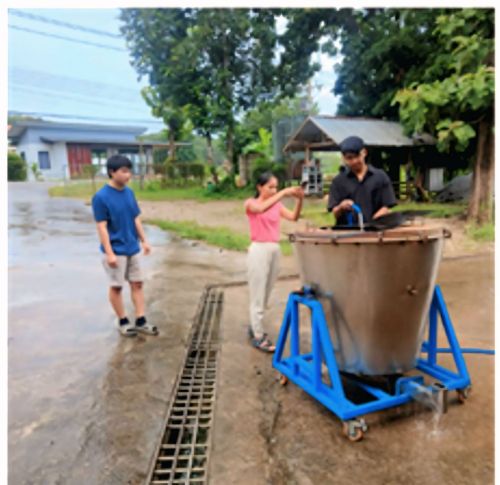 4. นอกจากการออกแบบและสร้างต้นแบบเตาเผาถ่านคาร์บอนแล้ว ยังมีการพัฒนาเครื่องบดผสมและเครื่องอัดถ่านจากวัสดุเหลือทิ้ง ทำให้การใช้งานตอบโจทย์ได้ครบวงจร